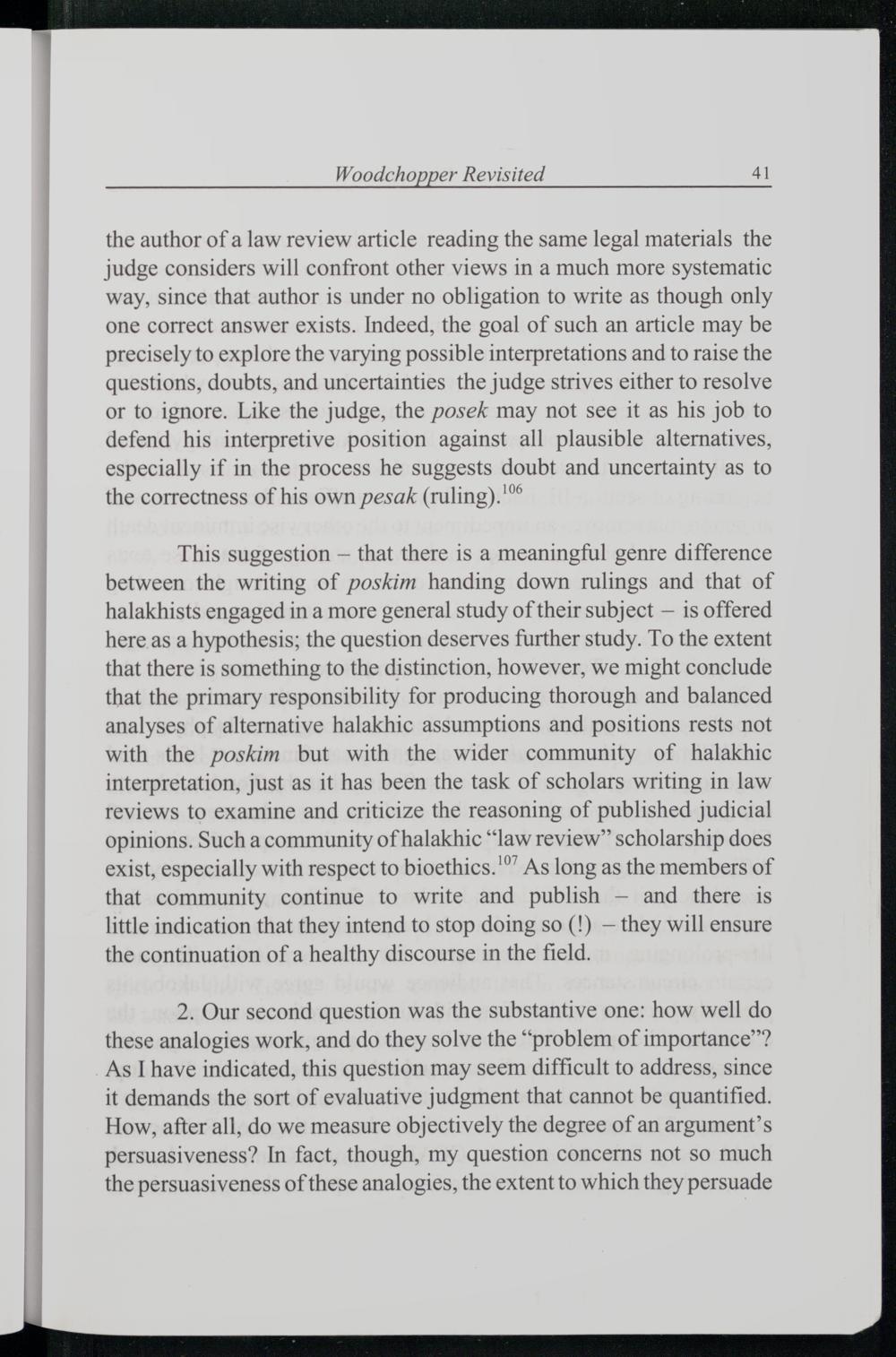 THE WOODCHOPPER REVISITED ON ANALOGY, HALAKHAH, AND JEWISH BIOETHICS