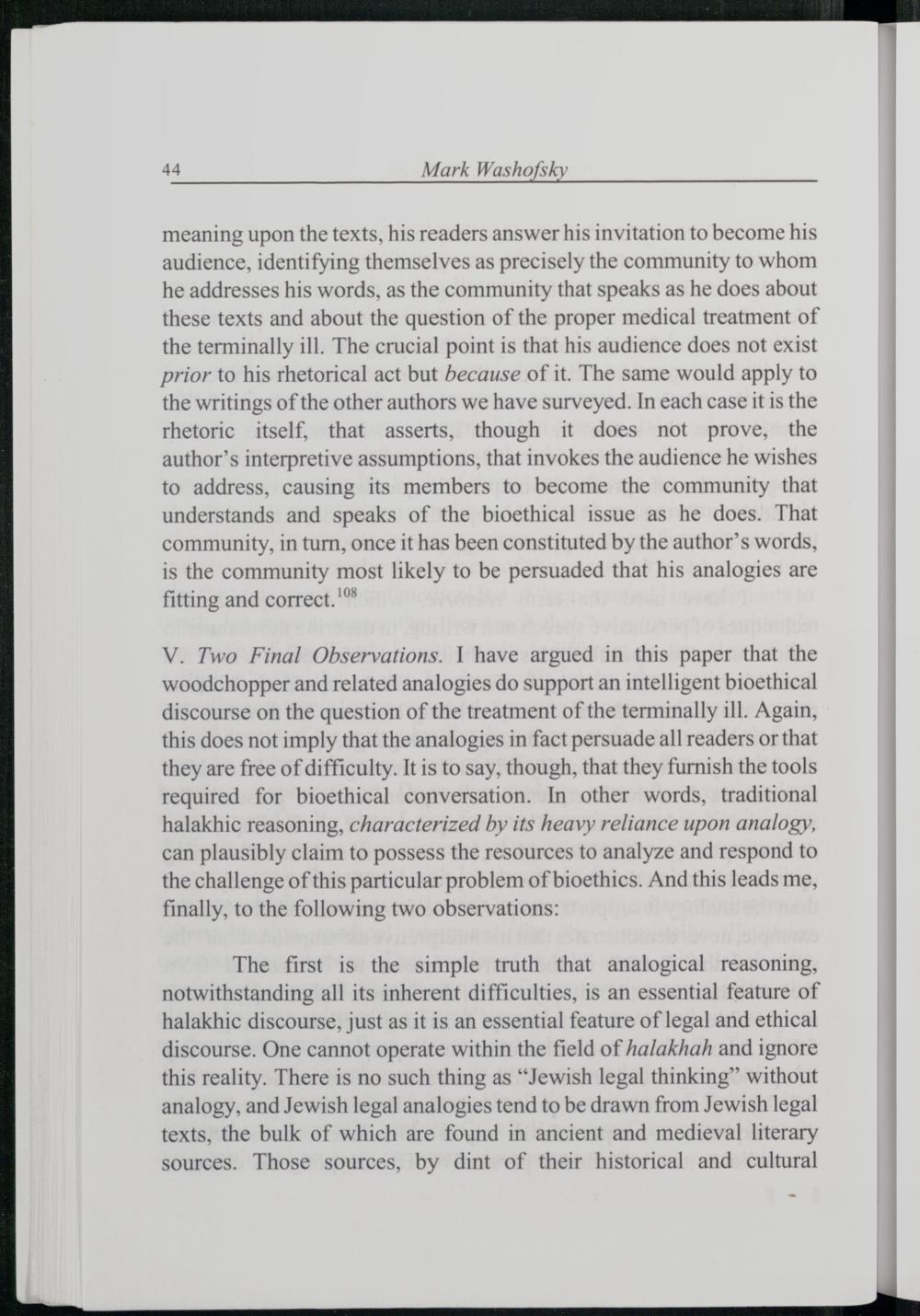 THE WOODCHOPPER REVISITED ON ANALOGY, HALAKHAH, AND JEWISH BIOETHICS