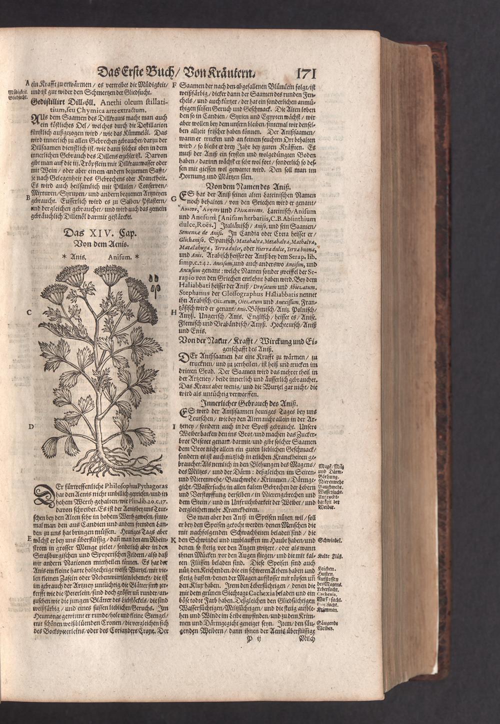 D. Jacobi Theodori Tabernaemontani, Neu vollkommen Kräuter-Buch : Darinnen Uber 3000. Kräuter/ mit schönen und kunstlichen Figuren/ auch deren Underscheid und Würckung/ samt ihren Namen in mancherley Sprachen/ beschrieben: Desgleichen auch/ wie dieselbige in allerhand Kranckheiten/ beyde der Menschen und des Viehs/ sollen angewendet und gebraucht werden/ angezeigt wird. Erstlichen durch Casparum Bauhinum D. und Profess. Basil. mit vielen neuen Figuren/ nutzlichen Artzneyen/ und anderem/ mit sonderem Fleis gebesseret/ Zum Andern Durch Hieronymum Bauhinum D. und Profess. Basil. mit sehr nutzlichen Marginalien, Synonimis, neuen Registeren und anderem vermehrt