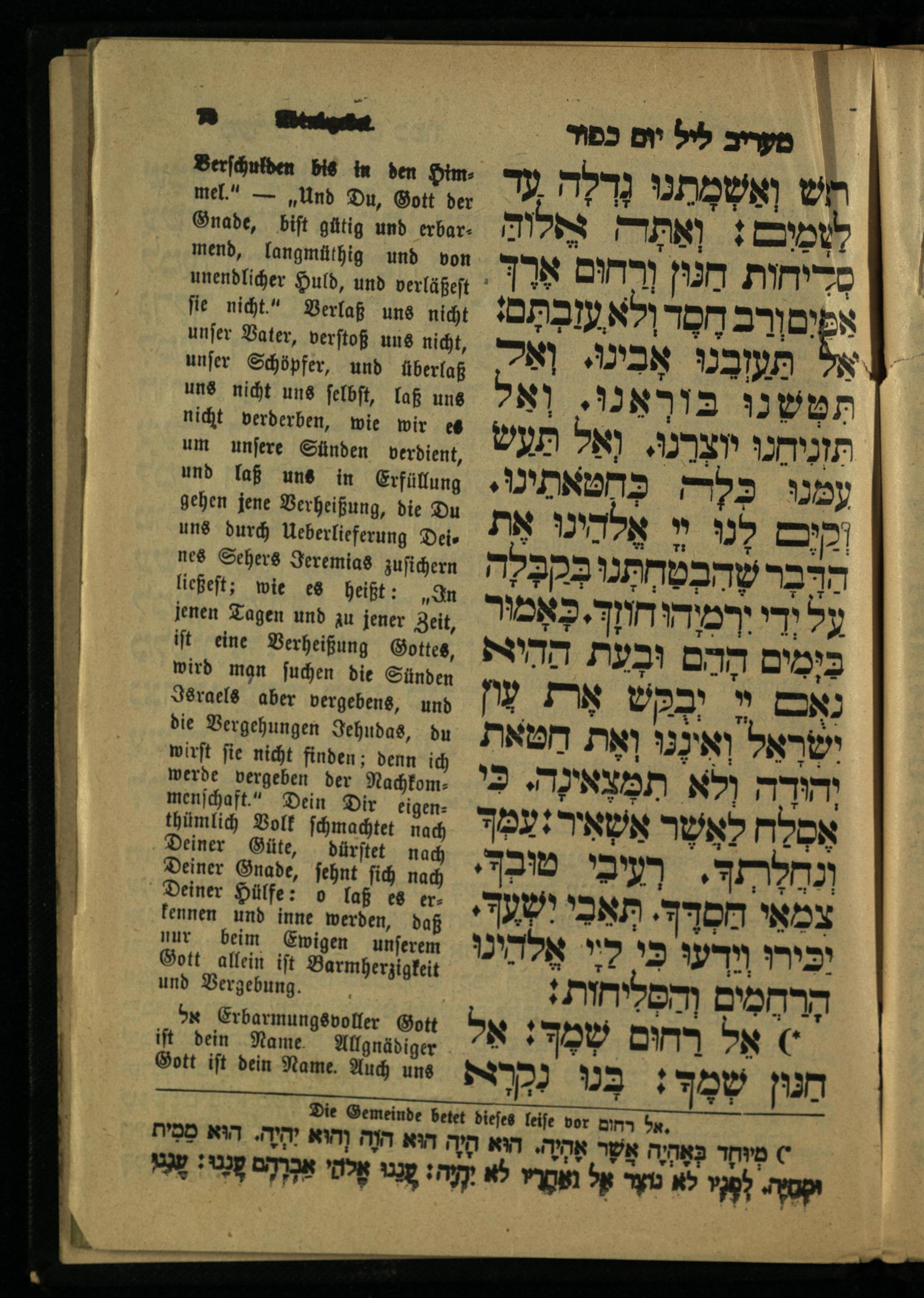 4. Theil. Für das Versöhnungsfest