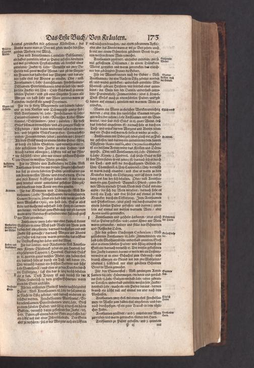 D. Jacobi Theodori Tabernaemontani, Neu vollkommen Kräuter-Buch : Darinnen Uber 3000. Kräuter/ mit schönen und kunstlichen Figuren/ auch deren Underscheid und Würckung/ samt ihren Namen in mancherley Sprachen/ beschrieben: Desgleichen auch/ wie dieselbige in allerhand Kranckheiten/ beyde der Menschen und des Viehs/ sollen angewendet und gebraucht werden/ angezeigt wird. Erstlichen durch Casparum Bauhinum D. und Profess. Basil. mit vielen neuen Figuren/ nutzlichen Artzneyen/ und anderem/ mit sonderem Fleis gebesseret/ Zum Andern Durch Hieronymum Bauhinum D. und Profess. Basil. mit sehr nutzlichen Marginalien, Synonimis, neuen Registeren und anderem vermehrt