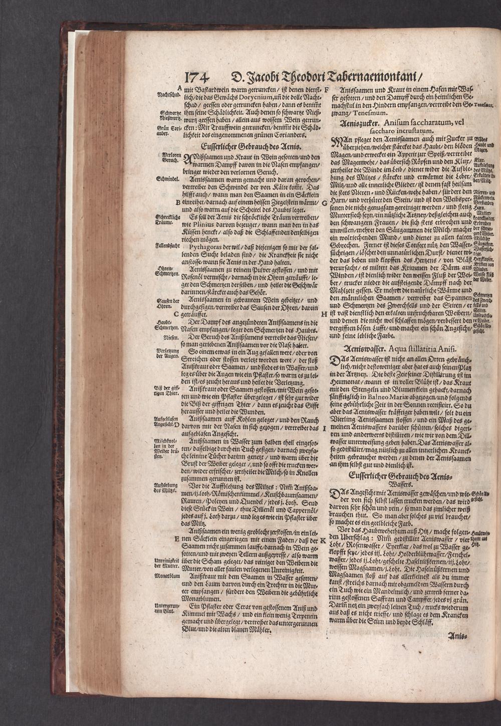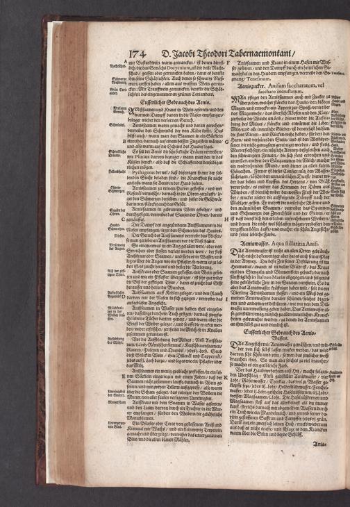 D. Jacobi Theodori Tabernaemontani, Neu vollkommen Kräuter-Buch : Darinnen Uber 3000. Kräuter/ mit schönen und kunstlichen Figuren/ auch deren Underscheid und Würckung/ samt ihren Namen in mancherley Sprachen/ beschrieben: Desgleichen auch/ wie dieselbige in allerhand Kranckheiten/ beyde der Menschen und des Viehs/ sollen angewendet und gebraucht werden/ angezeigt wird. Erstlichen durch Casparum Bauhinum D. und Profess. Basil. mit vielen neuen Figuren/ nutzlichen Artzneyen/ und anderem/ mit sonderem Fleis gebesseret/ Zum Andern Durch Hieronymum Bauhinum D. und Profess. Basil. mit sehr nutzlichen Marginalien, Synonimis, neuen Registeren und anderem vermehrt
