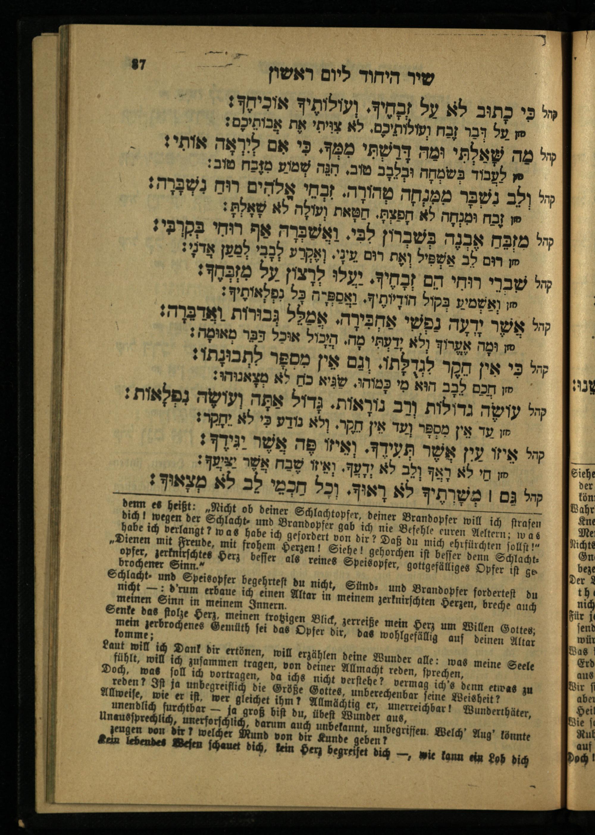 4. Theil. Für das Versöhnungsfest