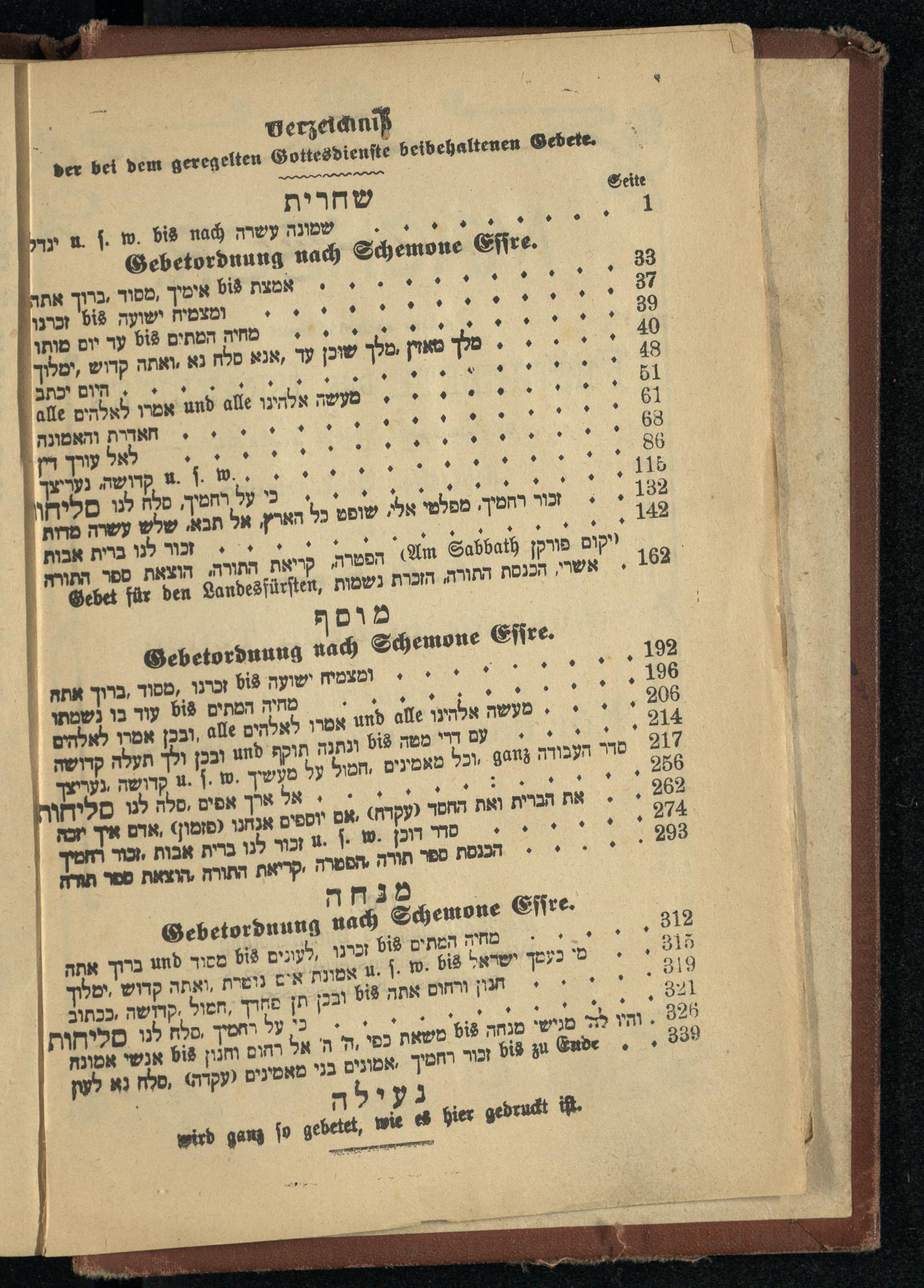 Verzeichniß der bei dem geregelten Gottesdienste beibehaltenen Gebete.