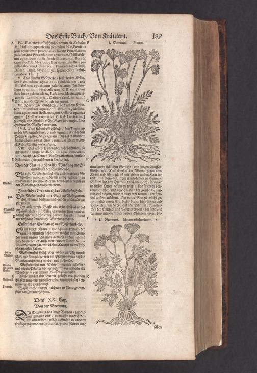 D. Jacobi Theodori Tabernaemontani, Neu vollkommen Kräuter-Buch : Darinnen Uber 3000. Kräuter/ mit schönen und kunstlichen Figuren/ auch deren Underscheid und Würckung/ samt ihren Namen in mancherley Sprachen/ beschrieben: Desgleichen auch/ wie dieselbige in allerhand Kranckheiten/ beyde der Menschen und des Viehs/ sollen angewendet und gebraucht werden/ angezeigt wird. Erstlichen durch Casparum Bauhinum D. und Profess. Basil. mit vielen neuen Figuren/ nutzlichen Artzneyen/ und anderem/ mit sonderem Fleis gebesseret/ Zum Andern Durch Hieronymum Bauhinum D. und Profess. Basil. mit sehr nutzlichen Marginalien, Synonimis, neuen Registeren und anderem vermehrt