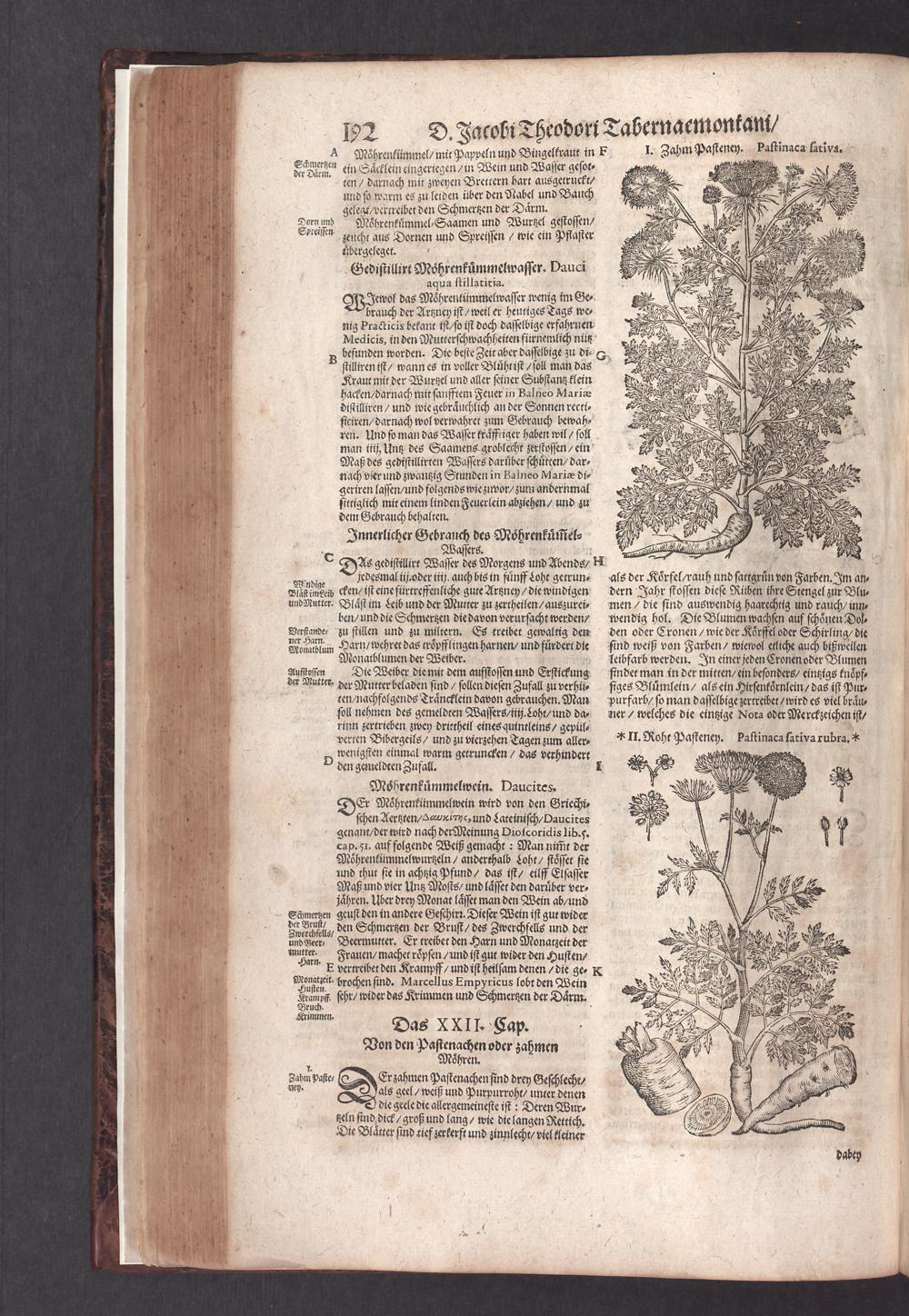 D. Jacobi Theodori Tabernaemontani, Neu vollkommen Kräuter-Buch : Darinnen Uber 3000. Kräuter/ mit schönen und kunstlichen Figuren/ auch deren Underscheid und Würckung/ samt ihren Namen in mancherley Sprachen/ beschrieben: Desgleichen auch/ wie dieselbige in allerhand Kranckheiten/ beyde der Menschen und des Viehs/ sollen angewendet und gebraucht werden/ angezeigt wird. Erstlichen durch Casparum Bauhinum D. und Profess. Basil. mit vielen neuen Figuren/ nutzlichen Artzneyen/ und anderem/ mit sonderem Fleis gebesseret/ Zum Andern Durch Hieronymum Bauhinum D. und Profess. Basil. mit sehr nutzlichen Marginalien, Synonimis, neuen Registeren und anderem vermehrt