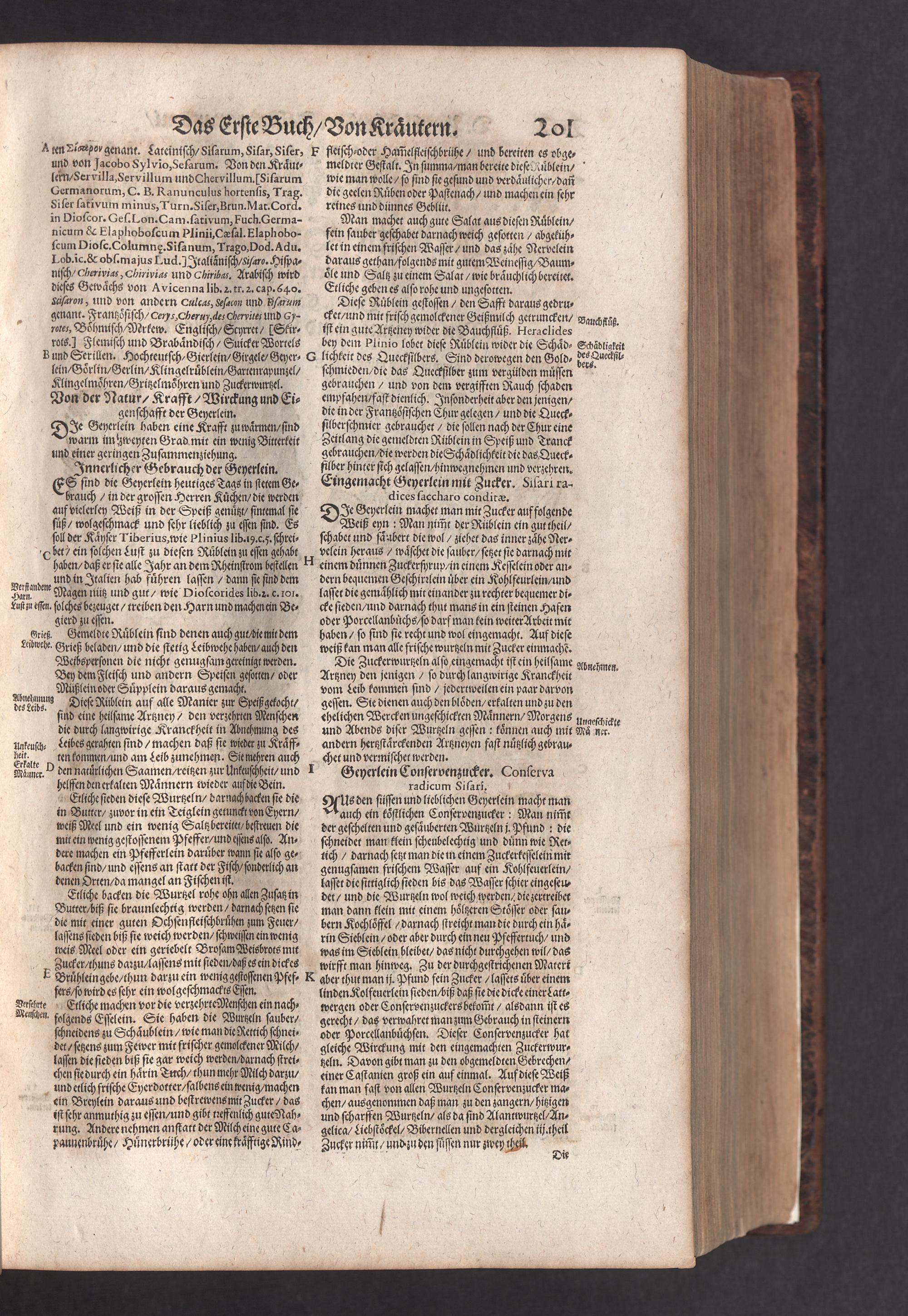 D. Jacobi Theodori Tabernaemontani, Neu vollkommen Kräuter-Buch : Darinnen Uber 3000. Kräuter/ mit schönen und kunstlichen Figuren/ auch deren Underscheid und Würckung/ samt ihren Namen in mancherley Sprachen/ beschrieben: Desgleichen auch/ wie dieselbige in allerhand Kranckheiten/ beyde der Menschen und des Viehs/ sollen angewendet und gebraucht werden/ angezeigt wird. Erstlichen durch Casparum Bauhinum D. und Profess. Basil. mit vielen neuen Figuren/ nutzlichen Artzneyen/ und anderem/ mit sonderem Fleis gebesseret/ Zum Andern Durch Hieronymum Bauhinum D. und Profess. Basil. mit sehr nutzlichen Marginalien, Synonimis, neuen Registeren und anderem vermehrt