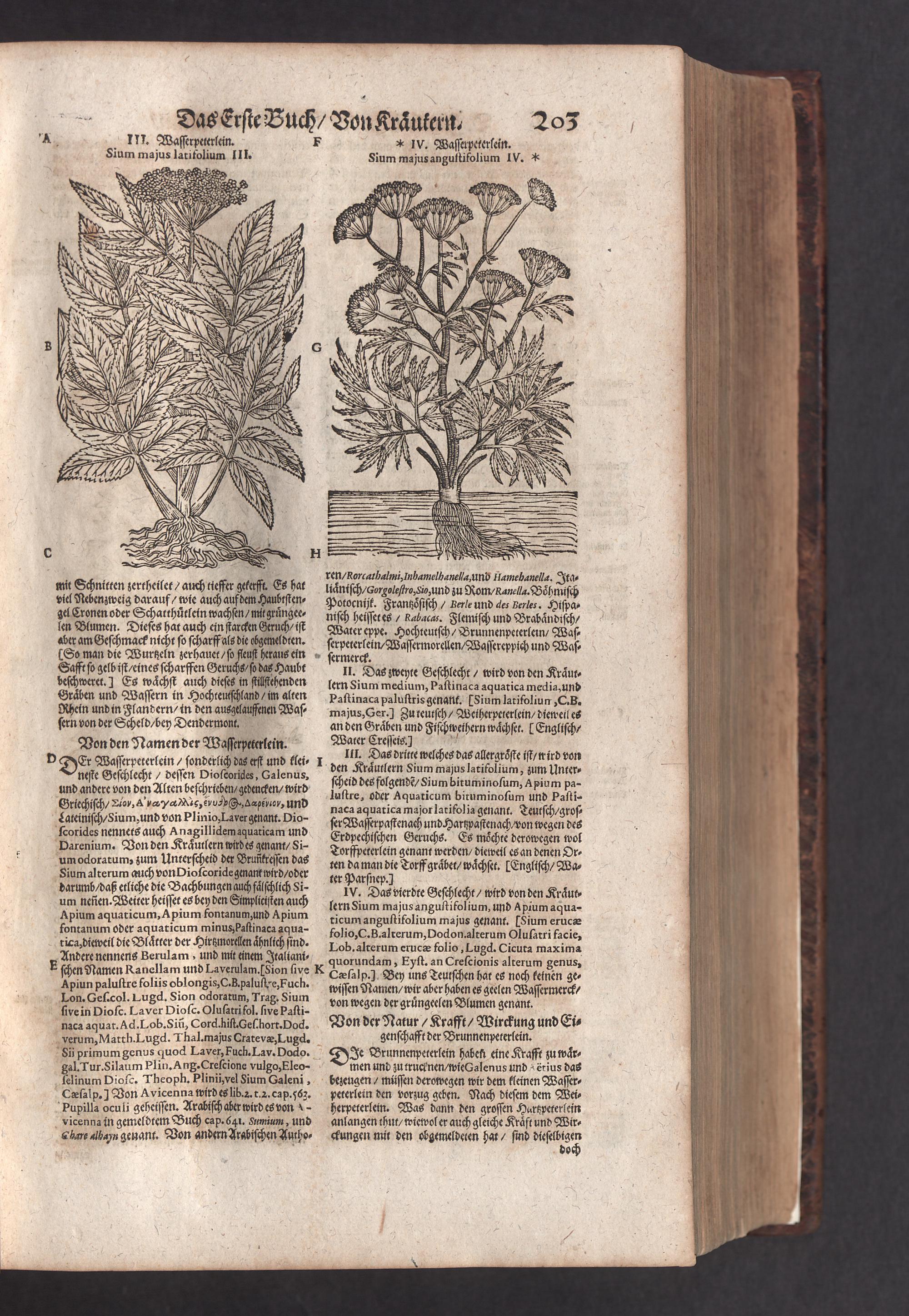 D. Jacobi Theodori Tabernaemontani, Neu vollkommen Kräuter-Buch : Darinnen Uber 3000. Kräuter/ mit schönen und kunstlichen Figuren/ auch deren Underscheid und Würckung/ samt ihren Namen in mancherley Sprachen/ beschrieben: Desgleichen auch/ wie dieselbige in allerhand Kranckheiten/ beyde der Menschen und des Viehs/ sollen angewendet und gebraucht werden/ angezeigt wird. Erstlichen durch Casparum Bauhinum D. und Profess. Basil. mit vielen neuen Figuren/ nutzlichen Artzneyen/ und anderem/ mit sonderem Fleis gebesseret/ Zum Andern Durch Hieronymum Bauhinum D. und Profess. Basil. mit sehr nutzlichen Marginalien, Synonimis, neuen Registeren und anderem vermehrt