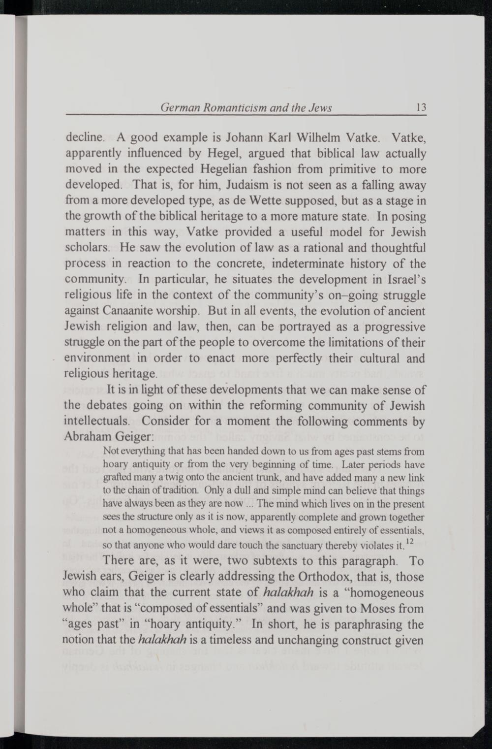 GERMAN ROMANTICISM AND THE JEWS: The Intellectual Basis for Halakhic Reform