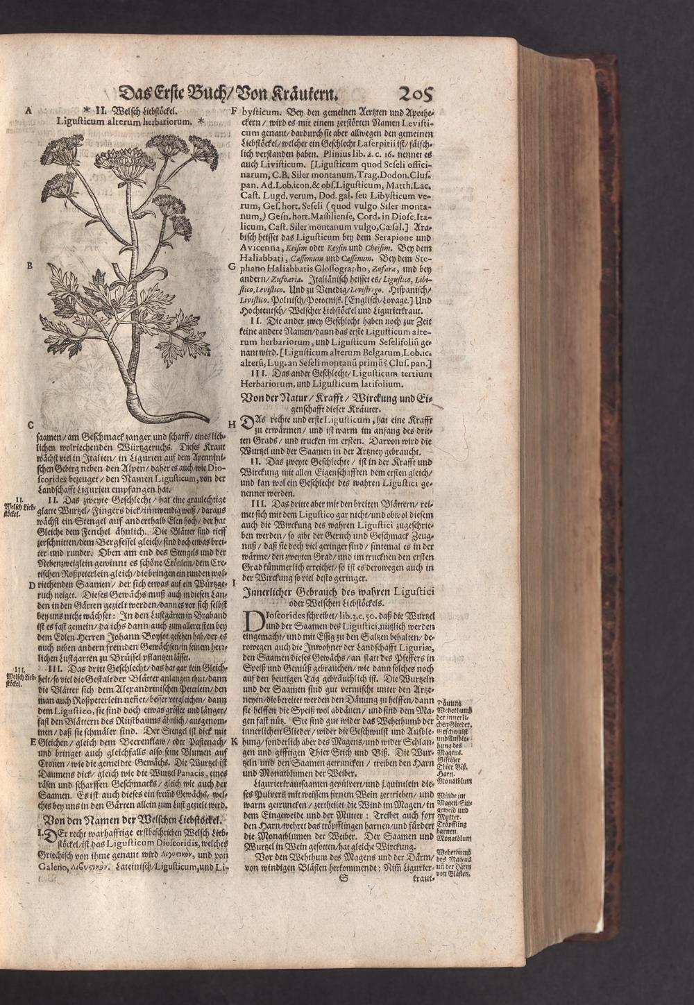 D. Jacobi Theodori Tabernaemontani, Neu vollkommen Kräuter-Buch : Darinnen Uber 3000. Kräuter/ mit schönen und kunstlichen Figuren/ auch deren Underscheid und Würckung/ samt ihren Namen in mancherley Sprachen/ beschrieben: Desgleichen auch/ wie dieselbige in allerhand Kranckheiten/ beyde der Menschen und des Viehs/ sollen angewendet und gebraucht werden/ angezeigt wird. Erstlichen durch Casparum Bauhinum D. und Profess. Basil. mit vielen neuen Figuren/ nutzlichen Artzneyen/ und anderem/ mit sonderem Fleis gebesseret/ Zum Andern Durch Hieronymum Bauhinum D. und Profess. Basil. mit sehr nutzlichen Marginalien, Synonimis, neuen Registeren und anderem vermehrt