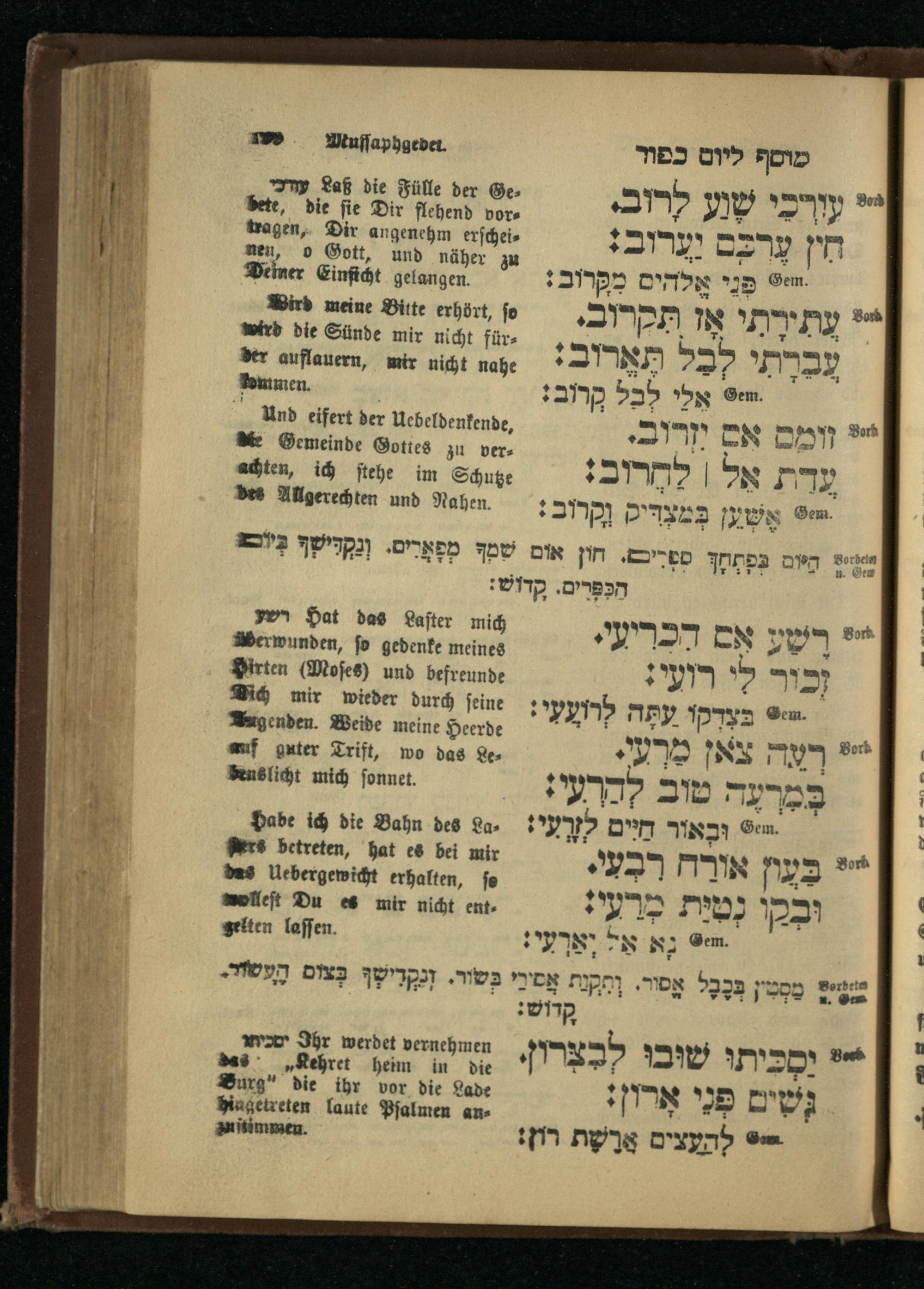 4. Theil. Für das Versöhnungsfest