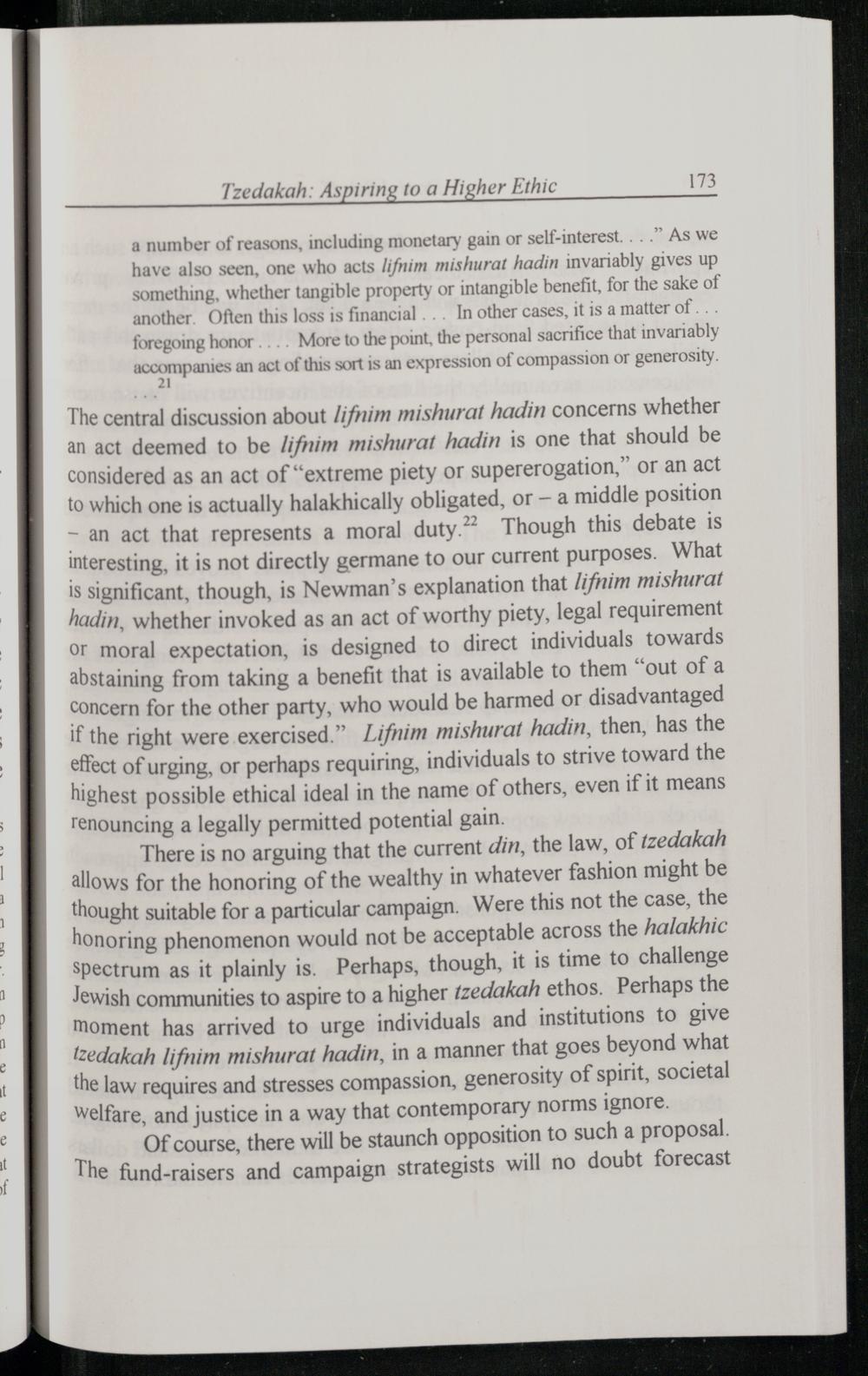 TZEDAKAH: ASPIRING TO A HIGHER ETHIC