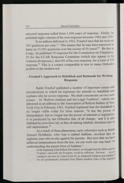 THE RESPONSA OF RABBI SOLOMON B. FREEHOF: A Reappraisal