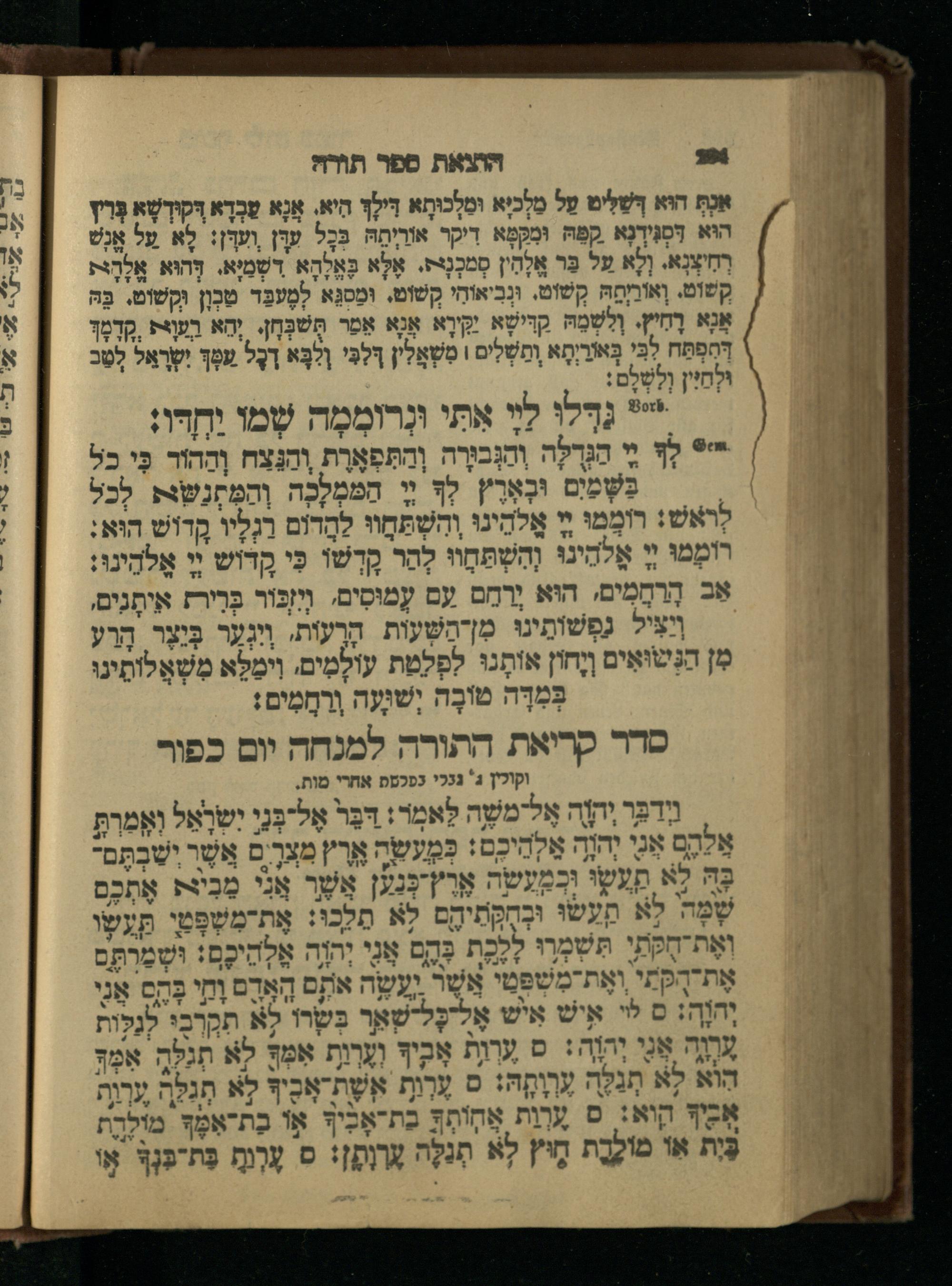 סדר קריאת התורה לשחרית יום כפור