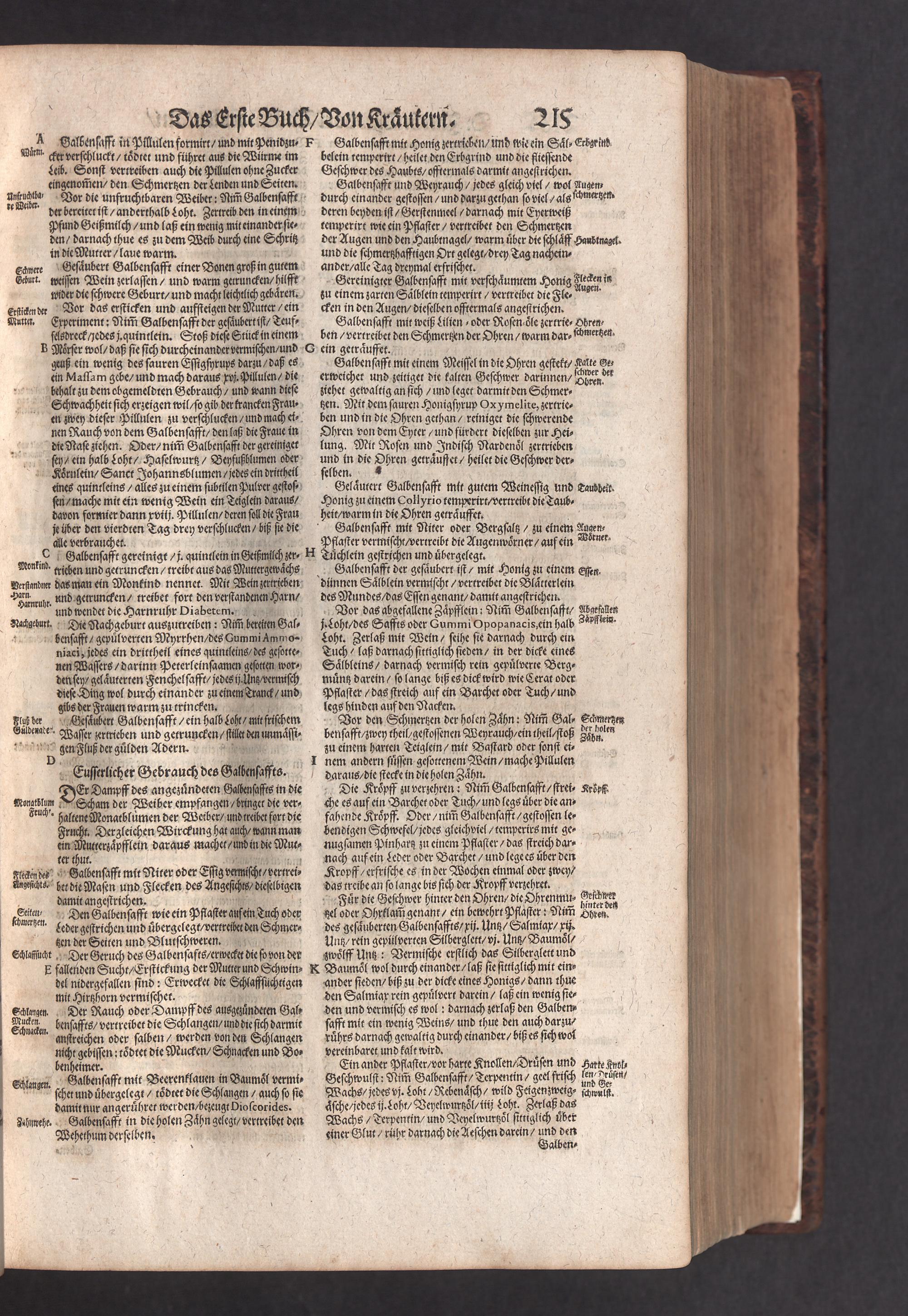 D. Jacobi Theodori Tabernaemontani, Neu vollkommen Kräuter-Buch : Darinnen Uber 3000. Kräuter/ mit schönen und kunstlichen Figuren/ auch deren Underscheid und Würckung/ samt ihren Namen in mancherley Sprachen/ beschrieben: Desgleichen auch/ wie dieselbige in allerhand Kranckheiten/ beyde der Menschen und des Viehs/ sollen angewendet und gebraucht werden/ angezeigt wird. Erstlichen durch Casparum Bauhinum D. und Profess. Basil. mit vielen neuen Figuren/ nutzlichen Artzneyen/ und anderem/ mit sonderem Fleis gebesseret/ Zum Andern Durch Hieronymum Bauhinum D. und Profess. Basil. mit sehr nutzlichen Marginalien, Synonimis, neuen Registeren und anderem vermehrt