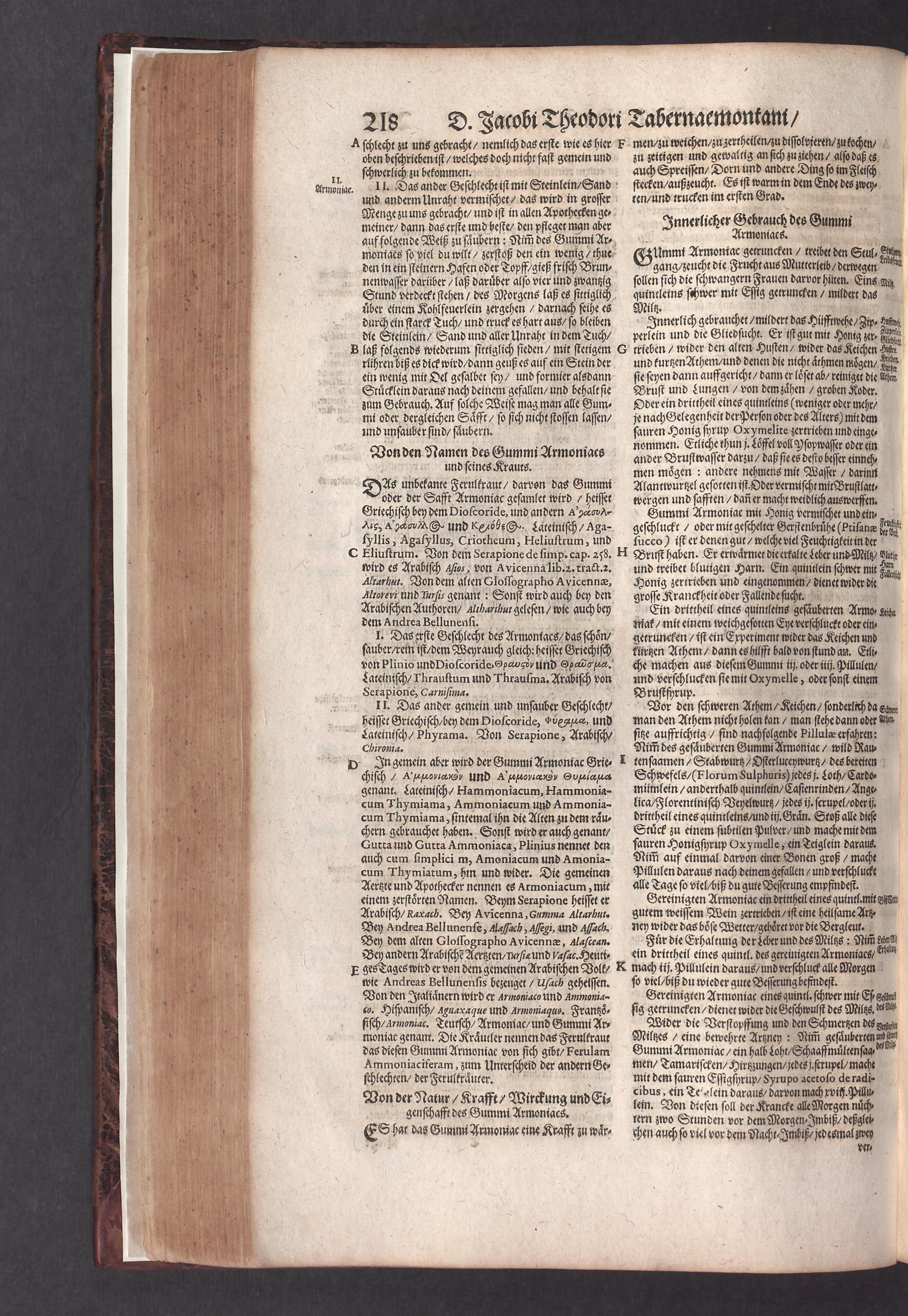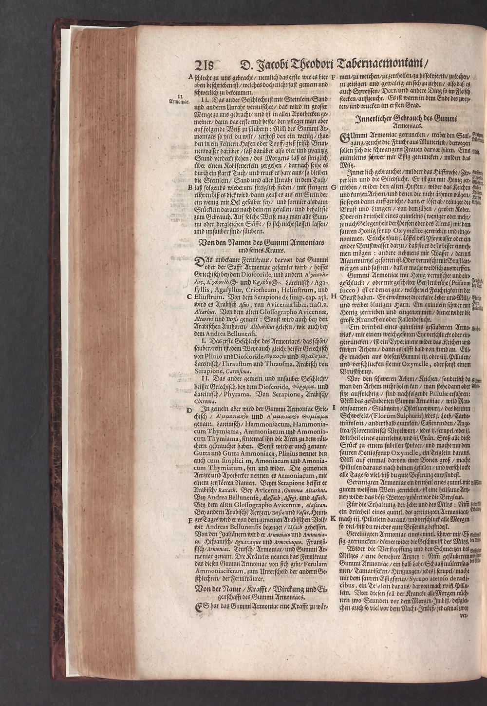D. Jacobi Theodori Tabernaemontani, Neu vollkommen Kräuter-Buch : Darinnen Uber 3000. Kräuter/ mit schönen und kunstlichen Figuren/ auch deren Underscheid und Würckung/ samt ihren Namen in mancherley Sprachen/ beschrieben: Desgleichen auch/ wie dieselbige in allerhand Kranckheiten/ beyde der Menschen und des Viehs/ sollen angewendet und gebraucht werden/ angezeigt wird. Erstlichen durch Casparum Bauhinum D. und Profess. Basil. mit vielen neuen Figuren/ nutzlichen Artzneyen/ und anderem/ mit sonderem Fleis gebesseret/ Zum Andern Durch Hieronymum Bauhinum D. und Profess. Basil. mit sehr nutzlichen Marginalien, Synonimis, neuen Registeren und anderem vermehrt