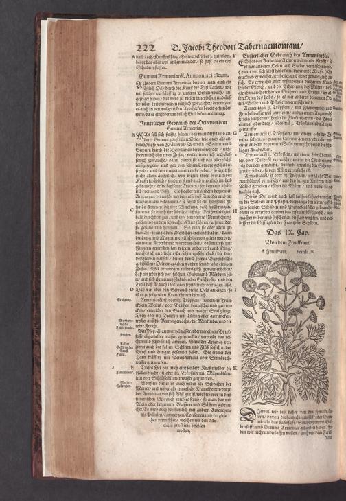 D. Jacobi Theodori Tabernaemontani, Neu vollkommen Kräuter-Buch : Darinnen Uber 3000. Kräuter/ mit schönen und kunstlichen Figuren/ auch deren Underscheid und Würckung/ samt ihren Namen in mancherley Sprachen/ beschrieben: Desgleichen auch/ wie dieselbige in allerhand Kranckheiten/ beyde der Menschen und des Viehs/ sollen angewendet und gebraucht werden/ angezeigt wird. Erstlichen durch Casparum Bauhinum D. und Profess. Basil. mit vielen neuen Figuren/ nutzlichen Artzneyen/ und anderem/ mit sonderem Fleis gebesseret/ Zum Andern Durch Hieronymum Bauhinum D. und Profess. Basil. mit sehr nutzlichen Marginalien, Synonimis, neuen Registeren und anderem vermehrt