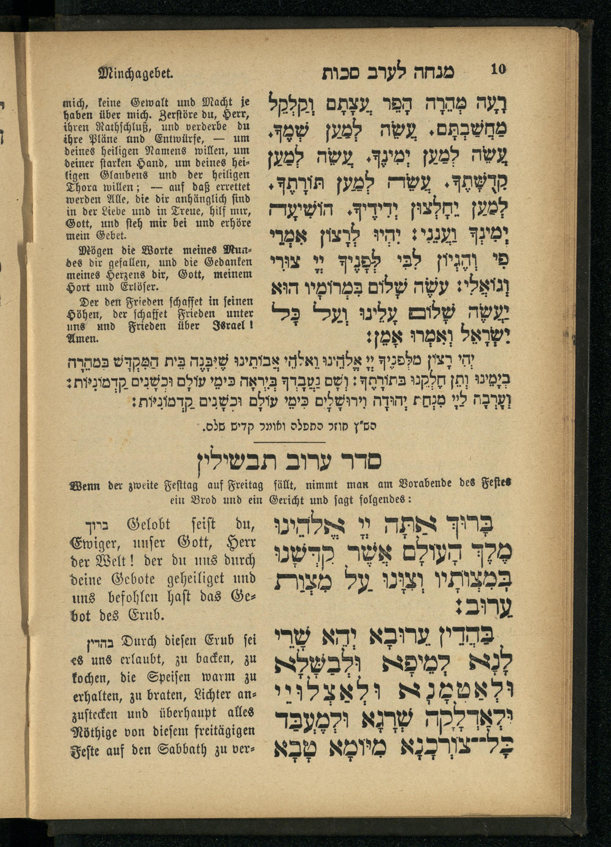 תפלת מנחה לערב סכות