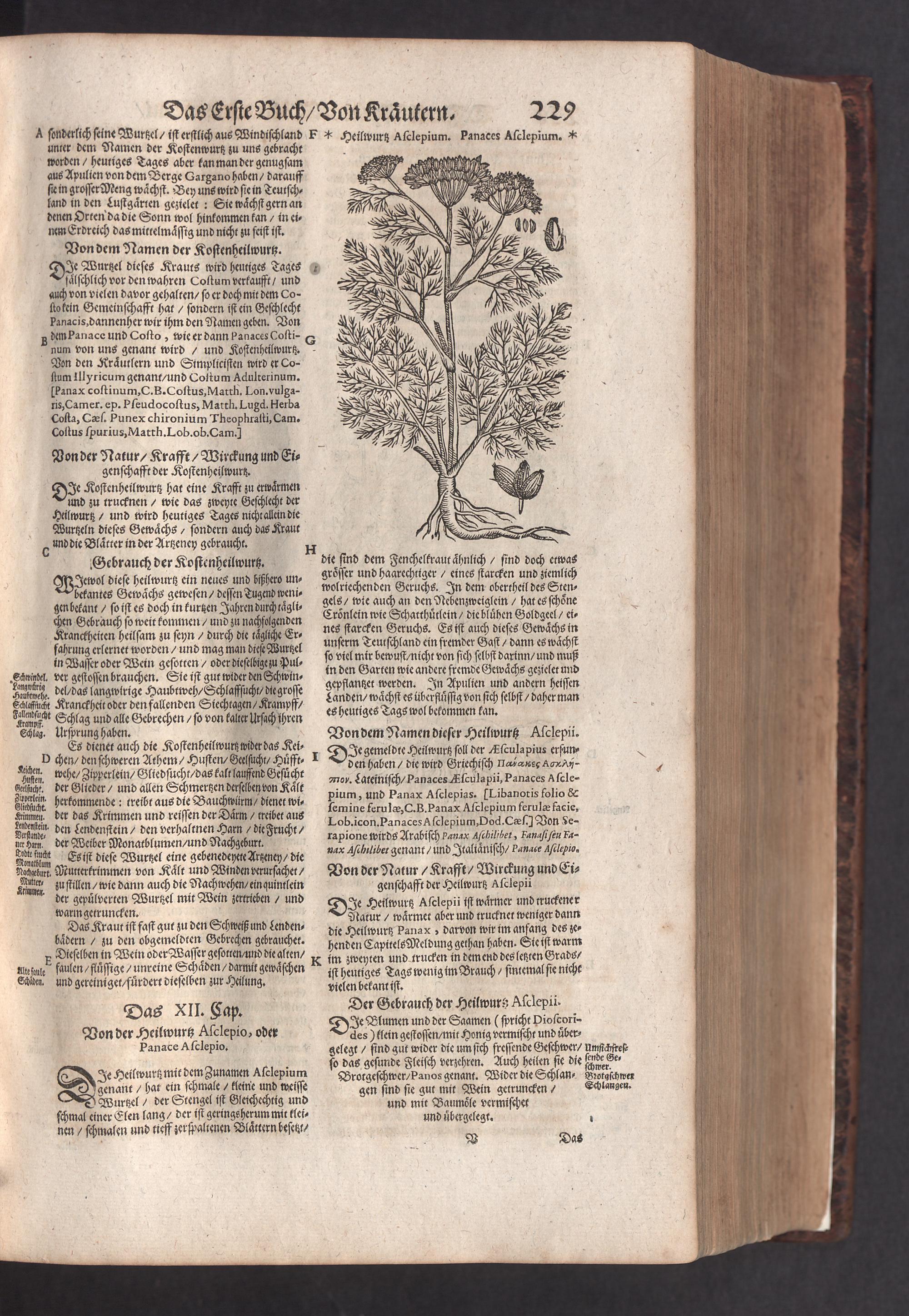D. Jacobi Theodori Tabernaemontani, Neu vollkommen Kräuter-Buch : Darinnen Uber 3000. Kräuter/ mit schönen und kunstlichen Figuren/ auch deren Underscheid und Würckung/ samt ihren Namen in mancherley Sprachen/ beschrieben: Desgleichen auch/ wie dieselbige in allerhand Kranckheiten/ beyde der Menschen und des Viehs/ sollen angewendet und gebraucht werden/ angezeigt wird. Erstlichen durch Casparum Bauhinum D. und Profess. Basil. mit vielen neuen Figuren/ nutzlichen Artzneyen/ und anderem/ mit sonderem Fleis gebesseret/ Zum Andern Durch Hieronymum Bauhinum D. und Profess. Basil. mit sehr nutzlichen Marginalien, Synonimis, neuen Registeren und anderem vermehrt
