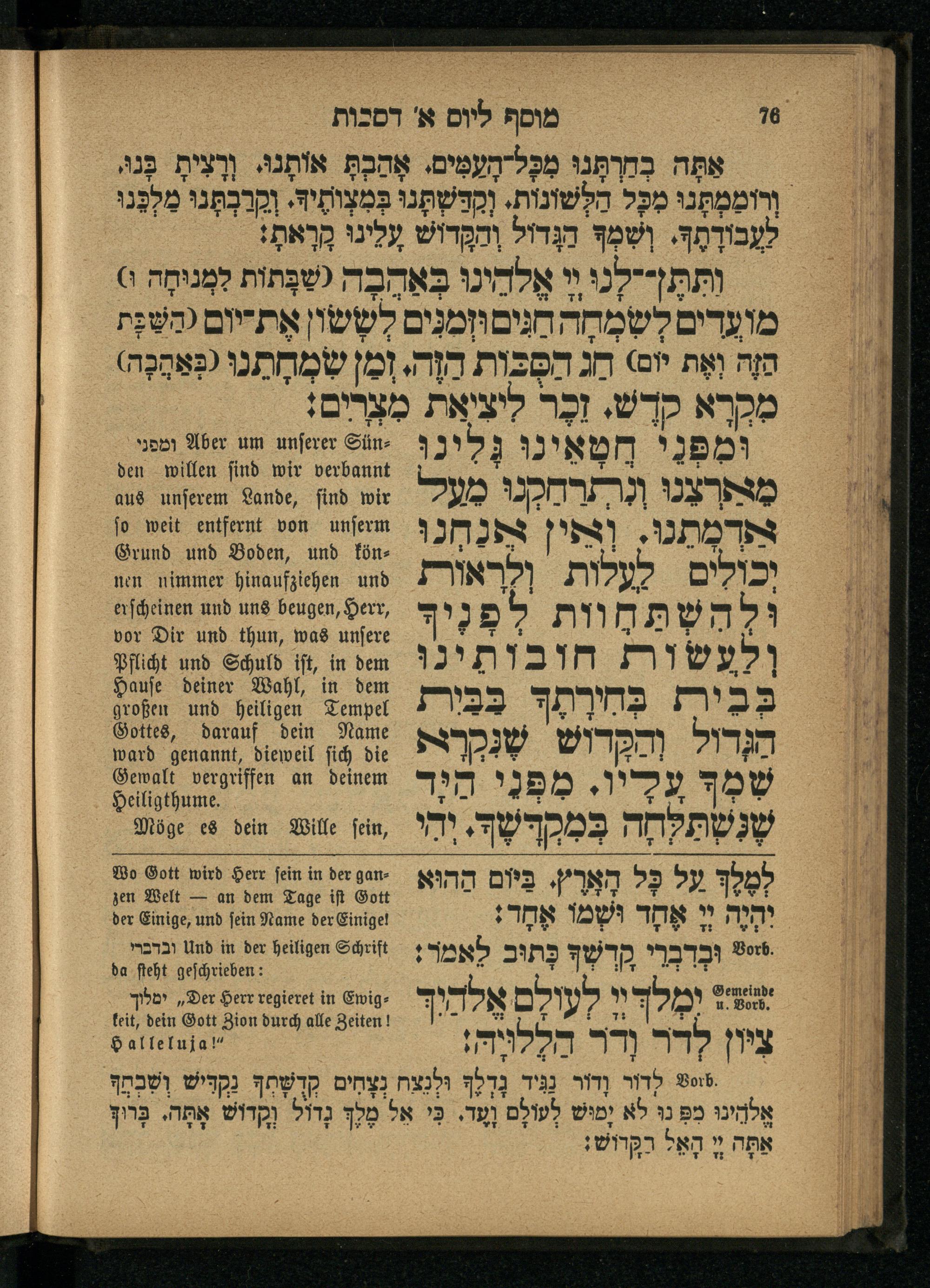 4. Theil. Für das Versöhnungsfest