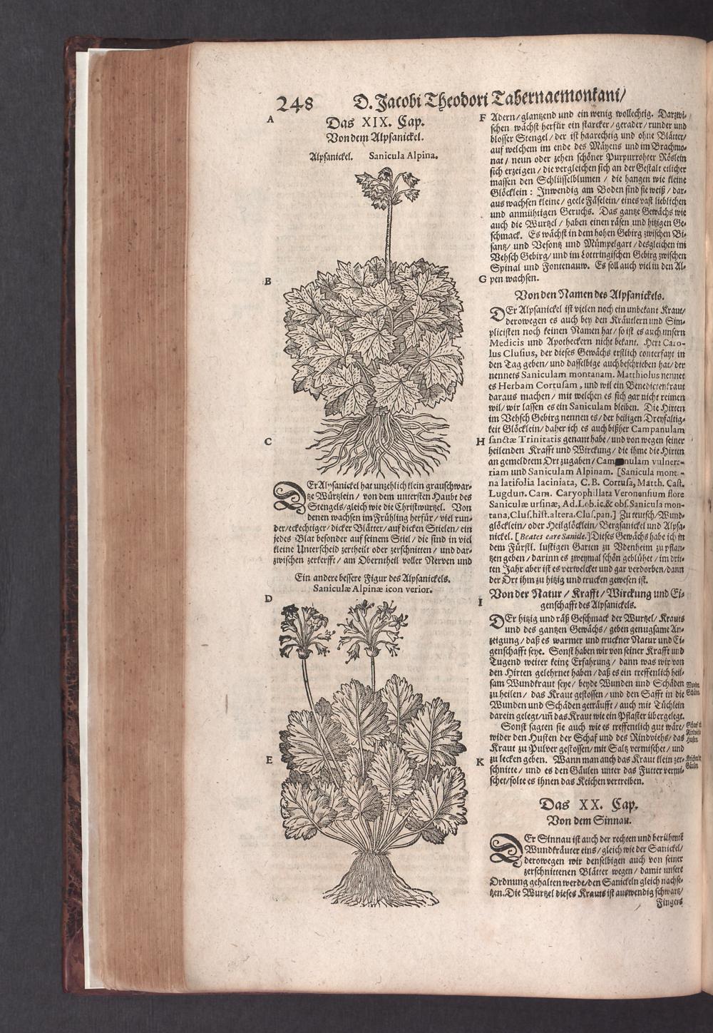 D. Jacobi Theodori Tabernaemontani, Neu vollkommen Kräuter-Buch : Darinnen Uber 3000. Kräuter/ mit schönen und kunstlichen Figuren/ auch deren Underscheid und Würckung/ samt ihren Namen in mancherley Sprachen/ beschrieben: Desgleichen auch/ wie dieselbige in allerhand Kranckheiten/ beyde der Menschen und des Viehs/ sollen angewendet und gebraucht werden/ angezeigt wird. Erstlichen durch Casparum Bauhinum D. und Profess. Basil. mit vielen neuen Figuren/ nutzlichen Artzneyen/ und anderem/ mit sonderem Fleis gebesseret/ Zum Andern Durch Hieronymum Bauhinum D. und Profess. Basil. mit sehr nutzlichen Marginalien, Synonimis, neuen Registeren und anderem vermehrt