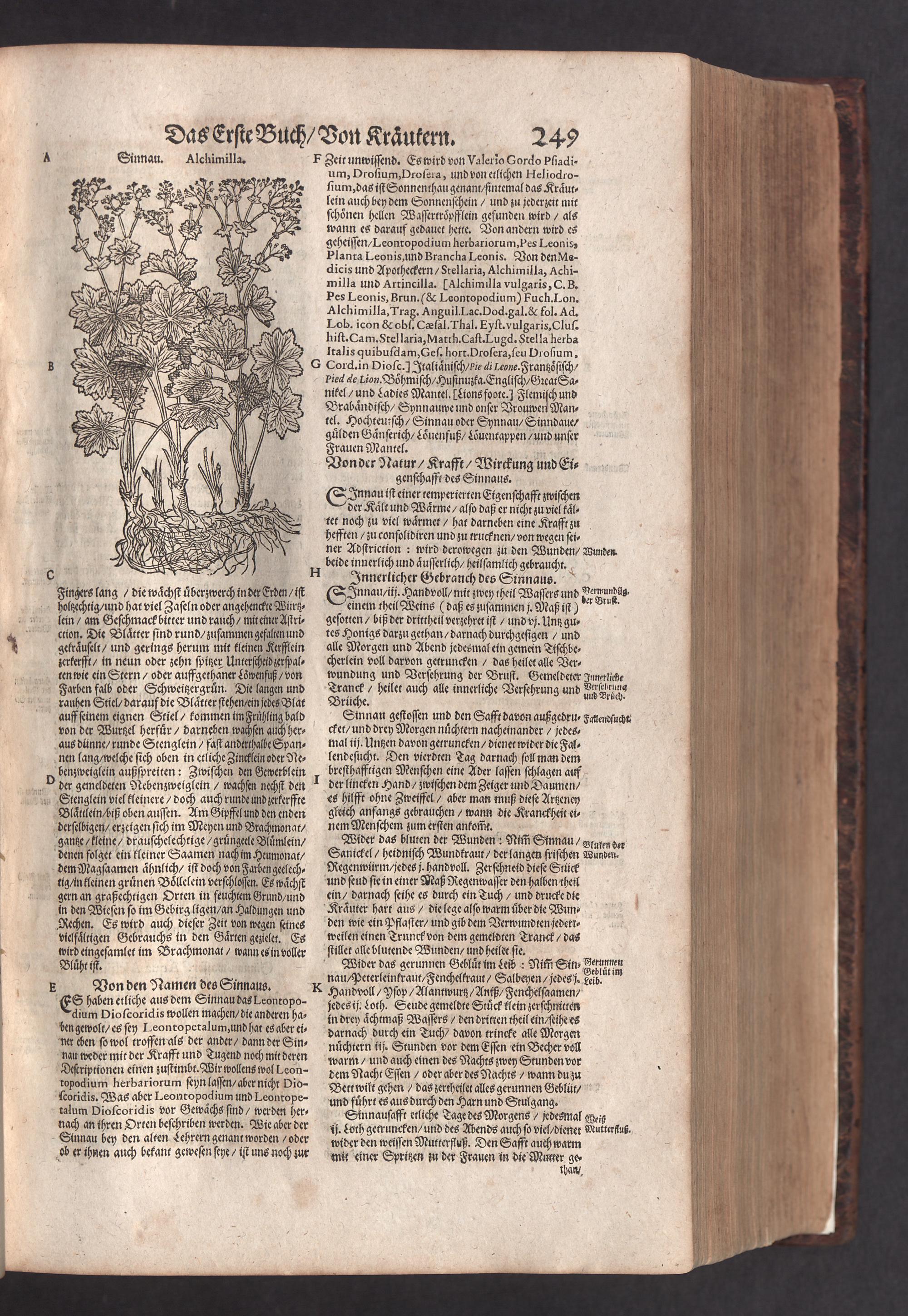 D. Jacobi Theodori Tabernaemontani, Neu vollkommen Kräuter-Buch : Darinnen Uber 3000. Kräuter/ mit schönen und kunstlichen Figuren/ auch deren Underscheid und Würckung/ samt ihren Namen in mancherley Sprachen/ beschrieben: Desgleichen auch/ wie dieselbige in allerhand Kranckheiten/ beyde der Menschen und des Viehs/ sollen angewendet und gebraucht werden/ angezeigt wird. Erstlichen durch Casparum Bauhinum D. und Profess. Basil. mit vielen neuen Figuren/ nutzlichen Artzneyen/ und anderem/ mit sonderem Fleis gebesseret/ Zum Andern Durch Hieronymum Bauhinum D. und Profess. Basil. mit sehr nutzlichen Marginalien, Synonimis, neuen Registeren und anderem vermehrt