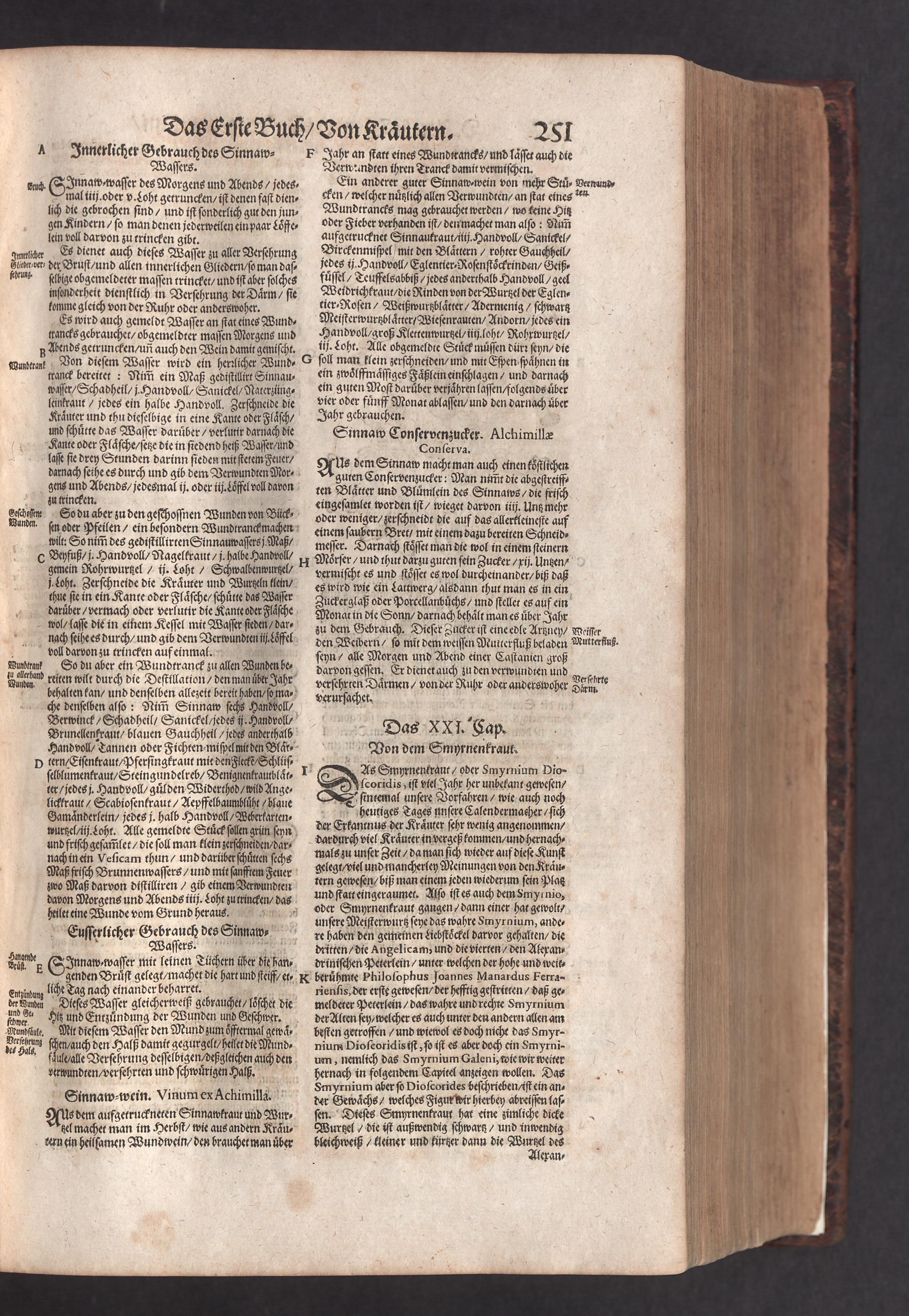 D. Jacobi Theodori Tabernaemontani, Neu vollkommen Kräuter-Buch : Darinnen Uber 3000. Kräuter/ mit schönen und kunstlichen Figuren/ auch deren Underscheid und Würckung/ samt ihren Namen in mancherley Sprachen/ beschrieben: Desgleichen auch/ wie dieselbige in allerhand Kranckheiten/ beyde der Menschen und des Viehs/ sollen angewendet und gebraucht werden/ angezeigt wird. Erstlichen durch Casparum Bauhinum D. und Profess. Basil. mit vielen neuen Figuren/ nutzlichen Artzneyen/ und anderem/ mit sonderem Fleis gebesseret/ Zum Andern Durch Hieronymum Bauhinum D. und Profess. Basil. mit sehr nutzlichen Marginalien, Synonimis, neuen Registeren und anderem vermehrt