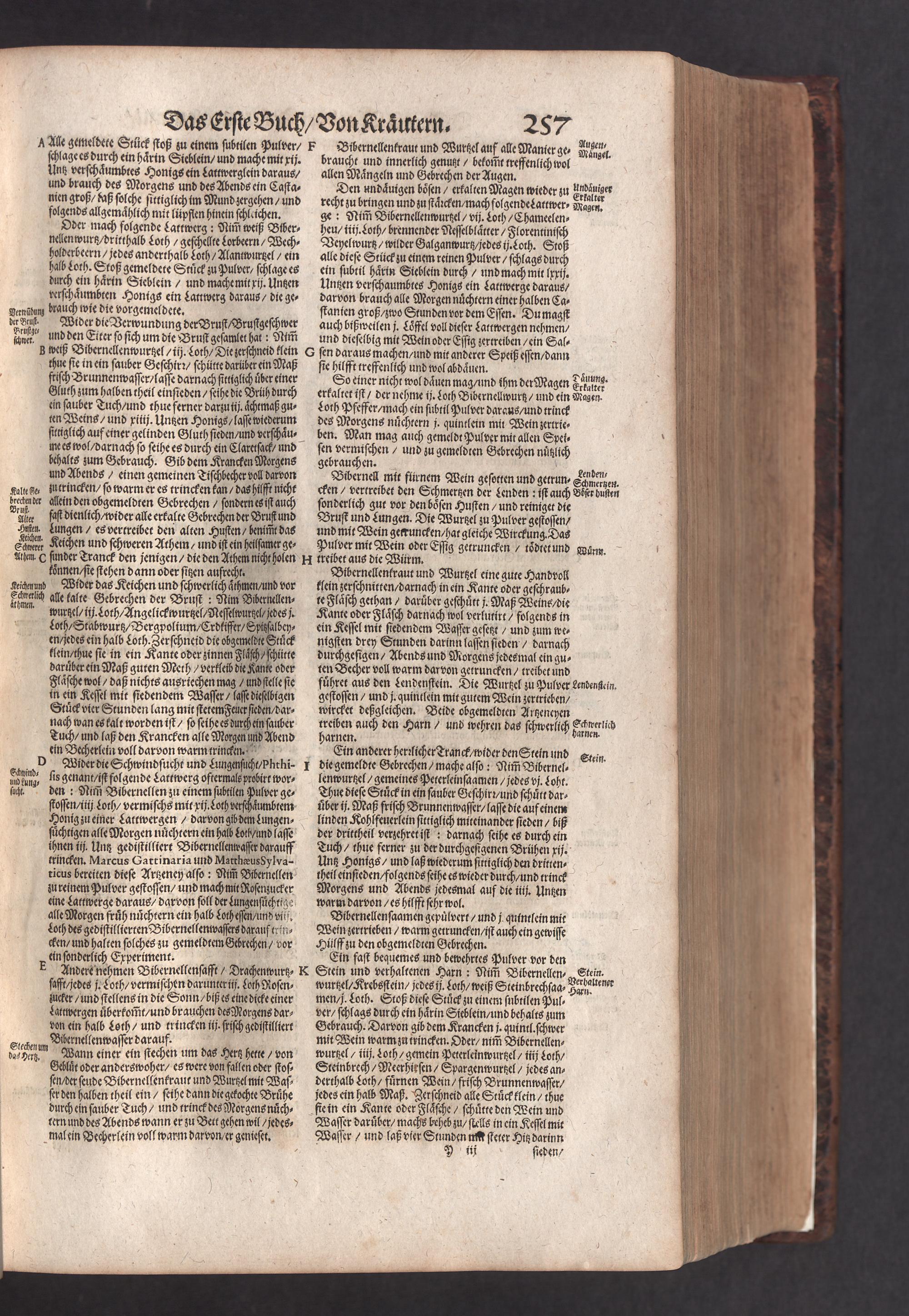 D. Jacobi Theodori Tabernaemontani, Neu vollkommen Kräuter-Buch : Darinnen Uber 3000. Kräuter/ mit schönen und kunstlichen Figuren/ auch deren Underscheid und Würckung/ samt ihren Namen in mancherley Sprachen/ beschrieben: Desgleichen auch/ wie dieselbige in allerhand Kranckheiten/ beyde der Menschen und des Viehs/ sollen angewendet und gebraucht werden/ angezeigt wird. Erstlichen durch Casparum Bauhinum D. und Profess. Basil. mit vielen neuen Figuren/ nutzlichen Artzneyen/ und anderem/ mit sonderem Fleis gebesseret/ Zum Andern Durch Hieronymum Bauhinum D. und Profess. Basil. mit sehr nutzlichen Marginalien, Synonimis, neuen Registeren und anderem vermehrt