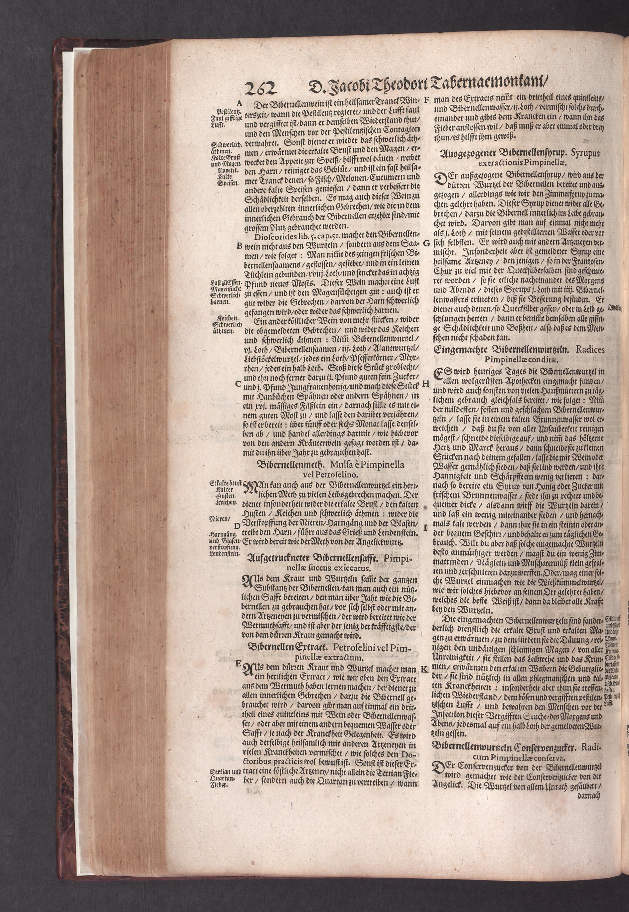 D. Jacobi Theodori Tabernaemontani, Neu vollkommen Kräuter-Buch : Darinnen Uber 3000. Kräuter/ mit schönen und kunstlichen Figuren/ auch deren Underscheid und Würckung/ samt ihren Namen in mancherley Sprachen/ beschrieben: Desgleichen auch/ wie dieselbige in allerhand Kranckheiten/ beyde der Menschen und des Viehs/ sollen angewendet und gebraucht werden/ angezeigt wird. Erstlichen durch Casparum Bauhinum D. und Profess. Basil. mit vielen neuen Figuren/ nutzlichen Artzneyen/ und anderem/ mit sonderem Fleis gebesseret/ Zum Andern Durch Hieronymum Bauhinum D. und Profess. Basil. mit sehr nutzlichen Marginalien, Synonimis, neuen Registeren und anderem vermehrt