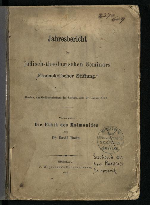Die Ethik des Maimonides / von David Rosin