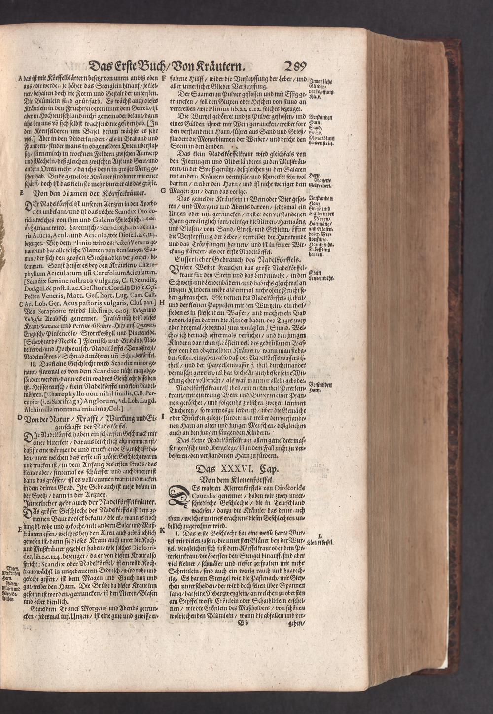D. Jacobi Theodori Tabernaemontani, Neu vollkommen Kräuter-Buch : Darinnen Uber 3000. Kräuter/ mit schönen und kunstlichen Figuren/ auch deren Underscheid und Würckung/ samt ihren Namen in mancherley Sprachen/ beschrieben: Desgleichen auch/ wie dieselbige in allerhand Kranckheiten/ beyde der Menschen und des Viehs/ sollen angewendet und gebraucht werden/ angezeigt wird. Erstlichen durch Casparum Bauhinum D. und Profess. Basil. mit vielen neuen Figuren/ nutzlichen Artzneyen/ und anderem/ mit sonderem Fleis gebesseret/ Zum Andern Durch Hieronymum Bauhinum D. und Profess. Basil. mit sehr nutzlichen Marginalien, Synonimis, neuen Registeren und anderem vermehrt