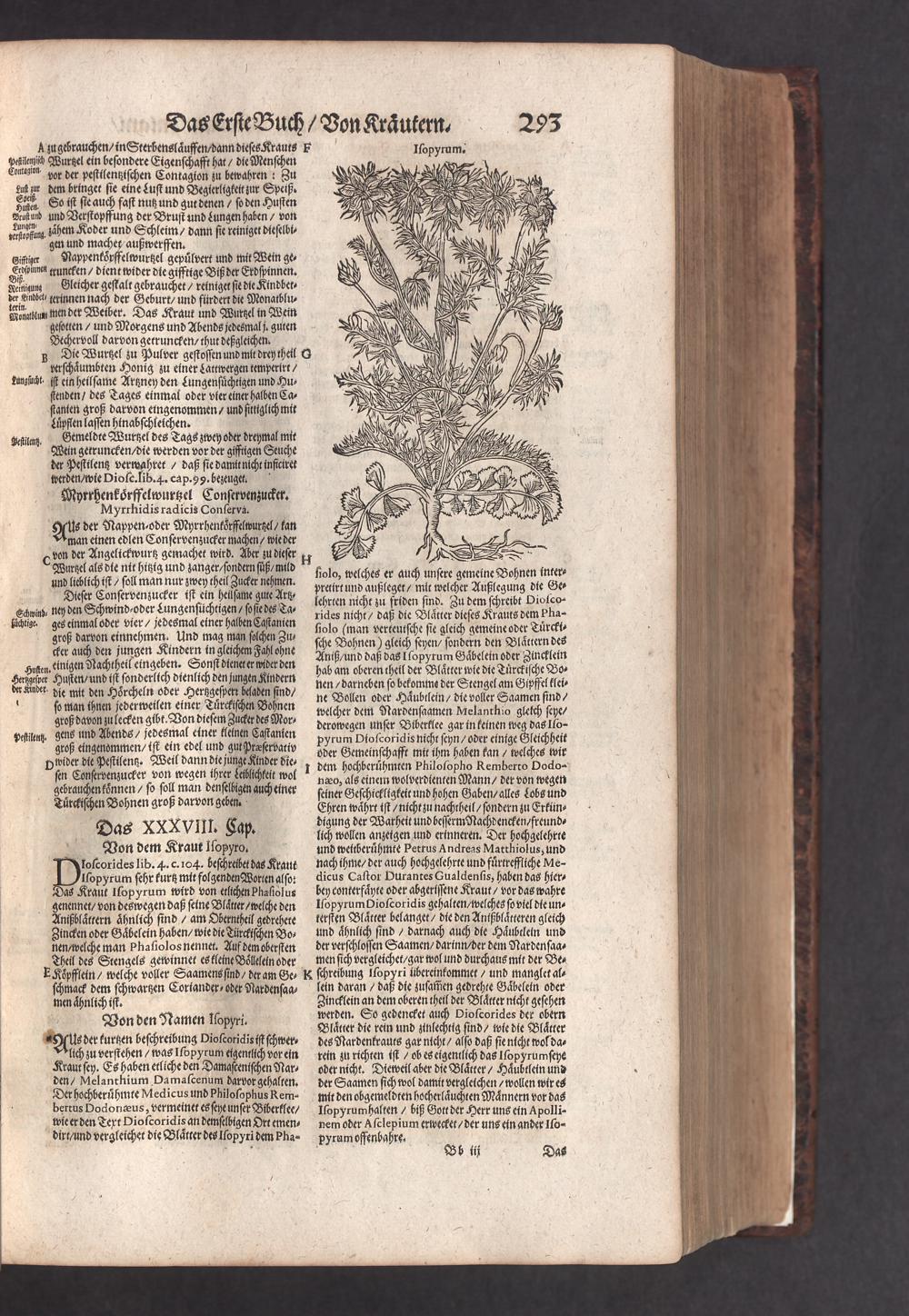 D. Jacobi Theodori Tabernaemontani, Neu vollkommen Kräuter-Buch : Darinnen Uber 3000. Kräuter/ mit schönen und kunstlichen Figuren/ auch deren Underscheid und Würckung/ samt ihren Namen in mancherley Sprachen/ beschrieben: Desgleichen auch/ wie dieselbige in allerhand Kranckheiten/ beyde der Menschen und des Viehs/ sollen angewendet und gebraucht werden/ angezeigt wird. Erstlichen durch Casparum Bauhinum D. und Profess. Basil. mit vielen neuen Figuren/ nutzlichen Artzneyen/ und anderem/ mit sonderem Fleis gebesseret/ Zum Andern Durch Hieronymum Bauhinum D. und Profess. Basil. mit sehr nutzlichen Marginalien, Synonimis, neuen Registeren und anderem vermehrt