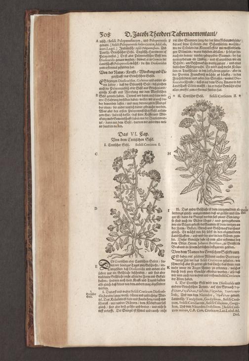 D. Jacobi Theodori Tabernaemontani, Neu vollkommen Kräuter-Buch : Darinnen Uber 3000. Kräuter/ mit schönen und kunstlichen Figuren/ auch deren Underscheid und Würckung/ samt ihren Namen in mancherley Sprachen/ beschrieben: Desgleichen auch/ wie dieselbige in allerhand Kranckheiten/ beyde der Menschen und des Viehs/ sollen angewendet und gebraucht werden/ angezeigt wird. Erstlichen durch Casparum Bauhinum D. und Profess. Basil. mit vielen neuen Figuren/ nutzlichen Artzneyen/ und anderem/ mit sonderem Fleis gebesseret/ Zum Andern Durch Hieronymum Bauhinum D. und Profess. Basil. mit sehr nutzlichen Marginalien, Synonimis, neuen Registeren und anderem vermehrt