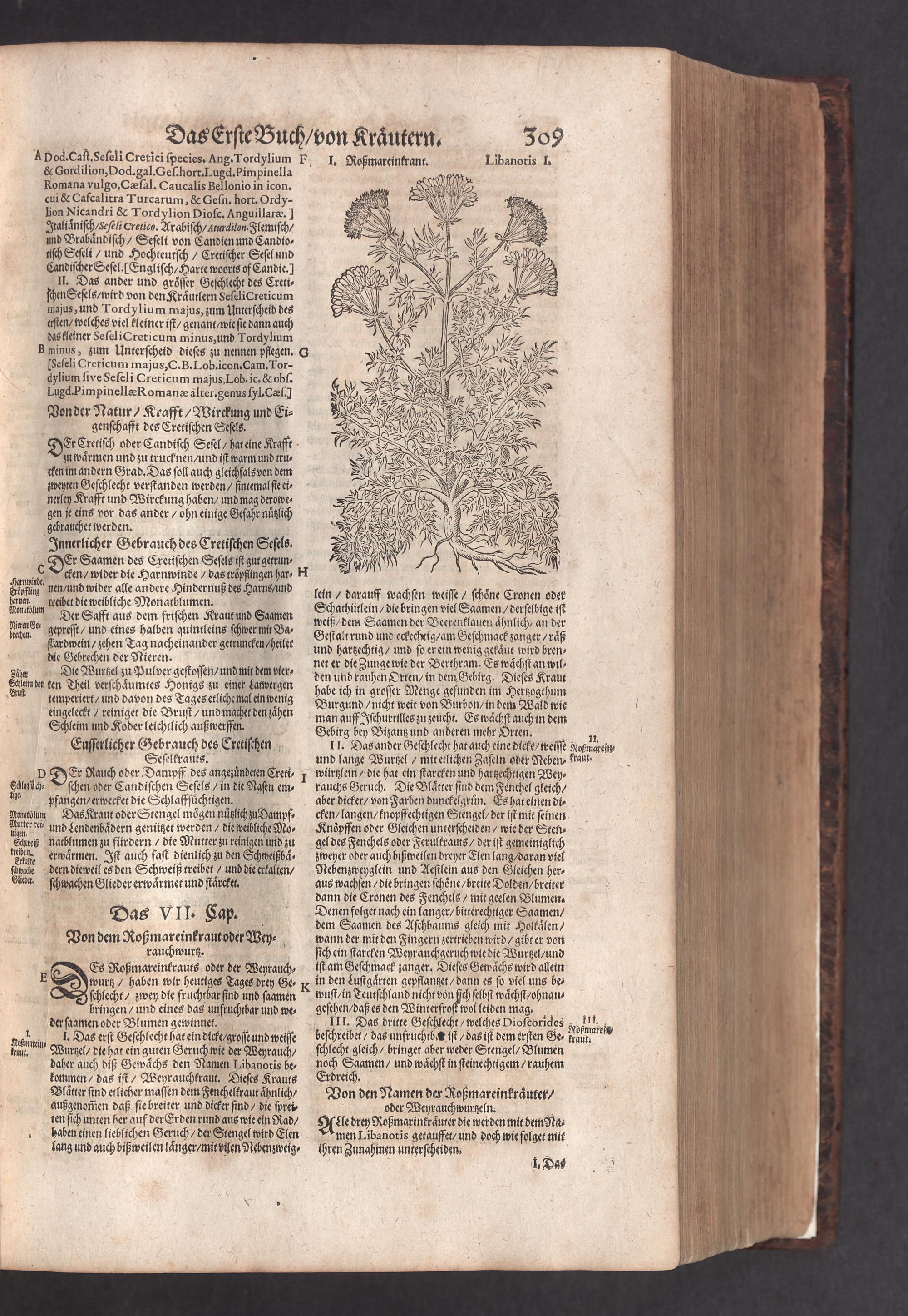 D. Jacobi Theodori Tabernaemontani, Neu vollkommen Kräuter-Buch : Darinnen Uber 3000. Kräuter/ mit schönen und kunstlichen Figuren/ auch deren Underscheid und Würckung/ samt ihren Namen in mancherley Sprachen/ beschrieben: Desgleichen auch/ wie dieselbige in allerhand Kranckheiten/ beyde der Menschen und des Viehs/ sollen angewendet und gebraucht werden/ angezeigt wird. Erstlichen durch Casparum Bauhinum D. und Profess. Basil. mit vielen neuen Figuren/ nutzlichen Artzneyen/ und anderem/ mit sonderem Fleis gebesseret/ Zum Andern Durch Hieronymum Bauhinum D. und Profess. Basil. mit sehr nutzlichen Marginalien, Synonimis, neuen Registeren und anderem vermehrt