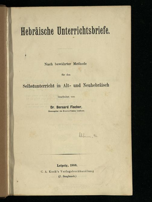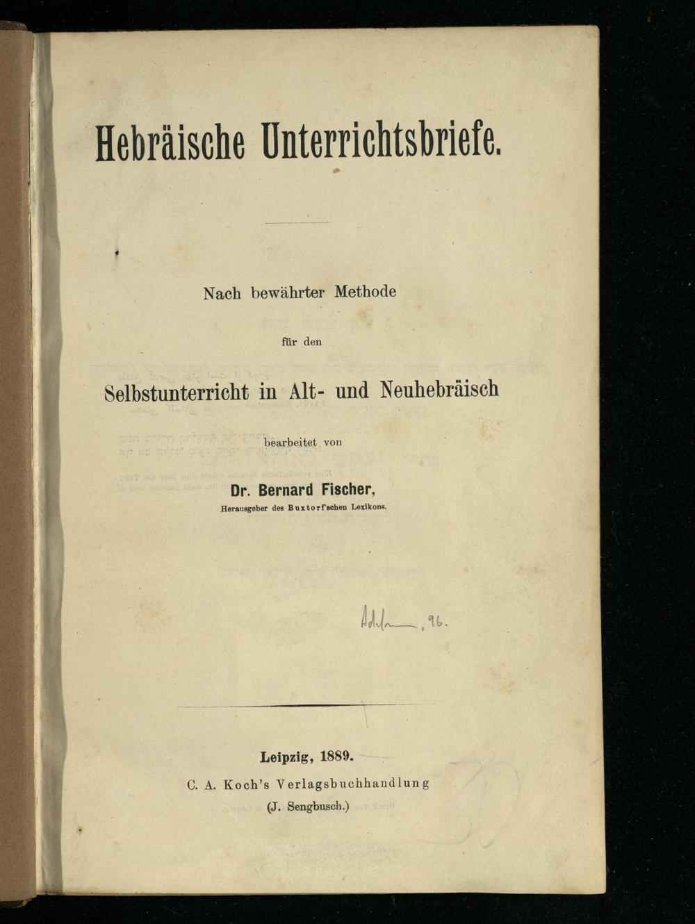Hebräische Unterrichtsbriefe / nach bewährter Methode für den Selbstunterricht in Alt- und Neuhebräisch bearbeitet von Dr. Bernhard Fischer, Herausgeber des Buxtorf'schen Lexikons