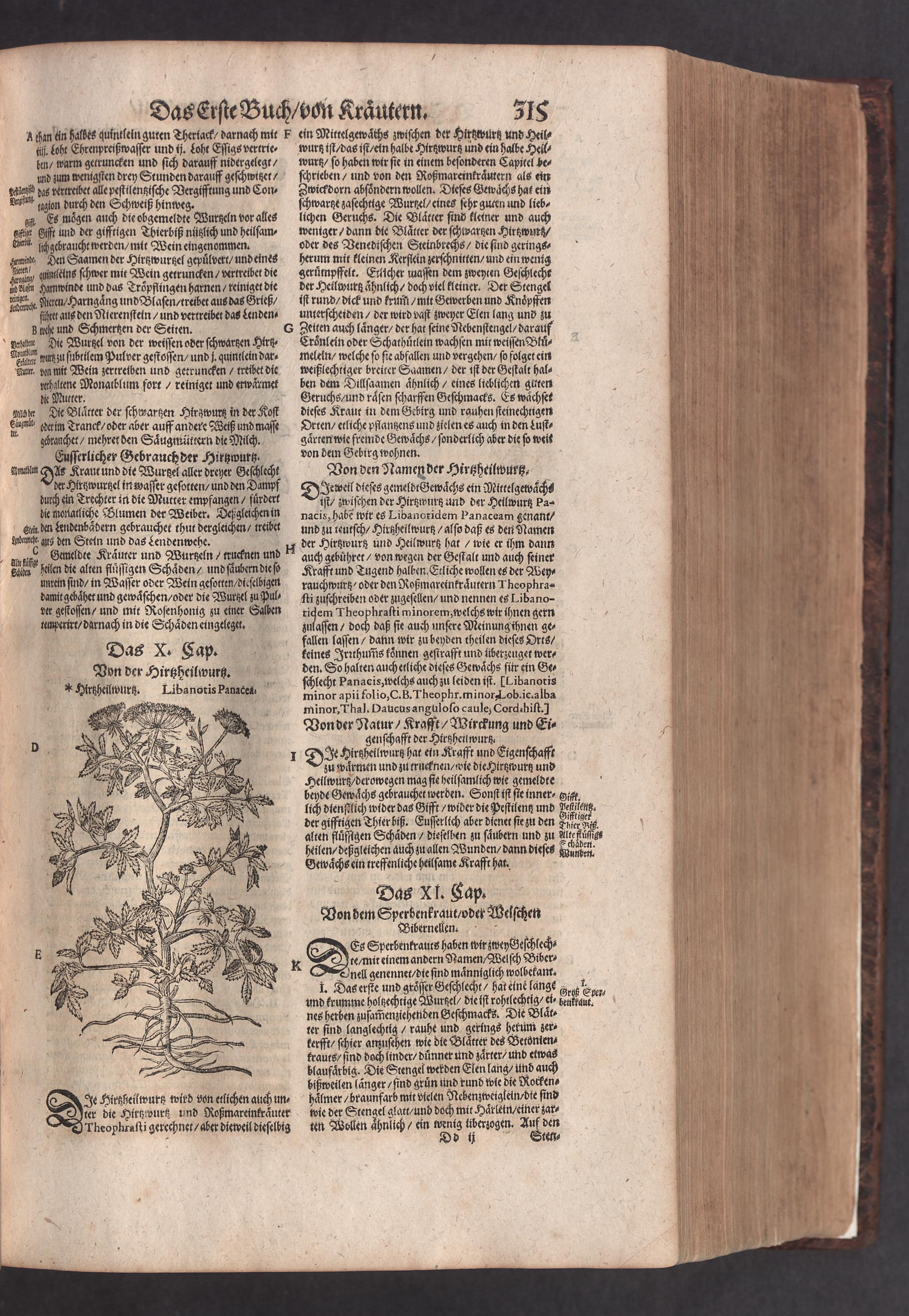 D. Jacobi Theodori Tabernaemontani, Neu vollkommen Kräuter-Buch : Darinnen Uber 3000. Kräuter/ mit schönen und kunstlichen Figuren/ auch deren Underscheid und Würckung/ samt ihren Namen in mancherley Sprachen/ beschrieben: Desgleichen auch/ wie dieselbige in allerhand Kranckheiten/ beyde der Menschen und des Viehs/ sollen angewendet und gebraucht werden/ angezeigt wird. Erstlichen durch Casparum Bauhinum D. und Profess. Basil. mit vielen neuen Figuren/ nutzlichen Artzneyen/ und anderem/ mit sonderem Fleis gebesseret/ Zum Andern Durch Hieronymum Bauhinum D. und Profess. Basil. mit sehr nutzlichen Marginalien, Synonimis, neuen Registeren und anderem vermehrt