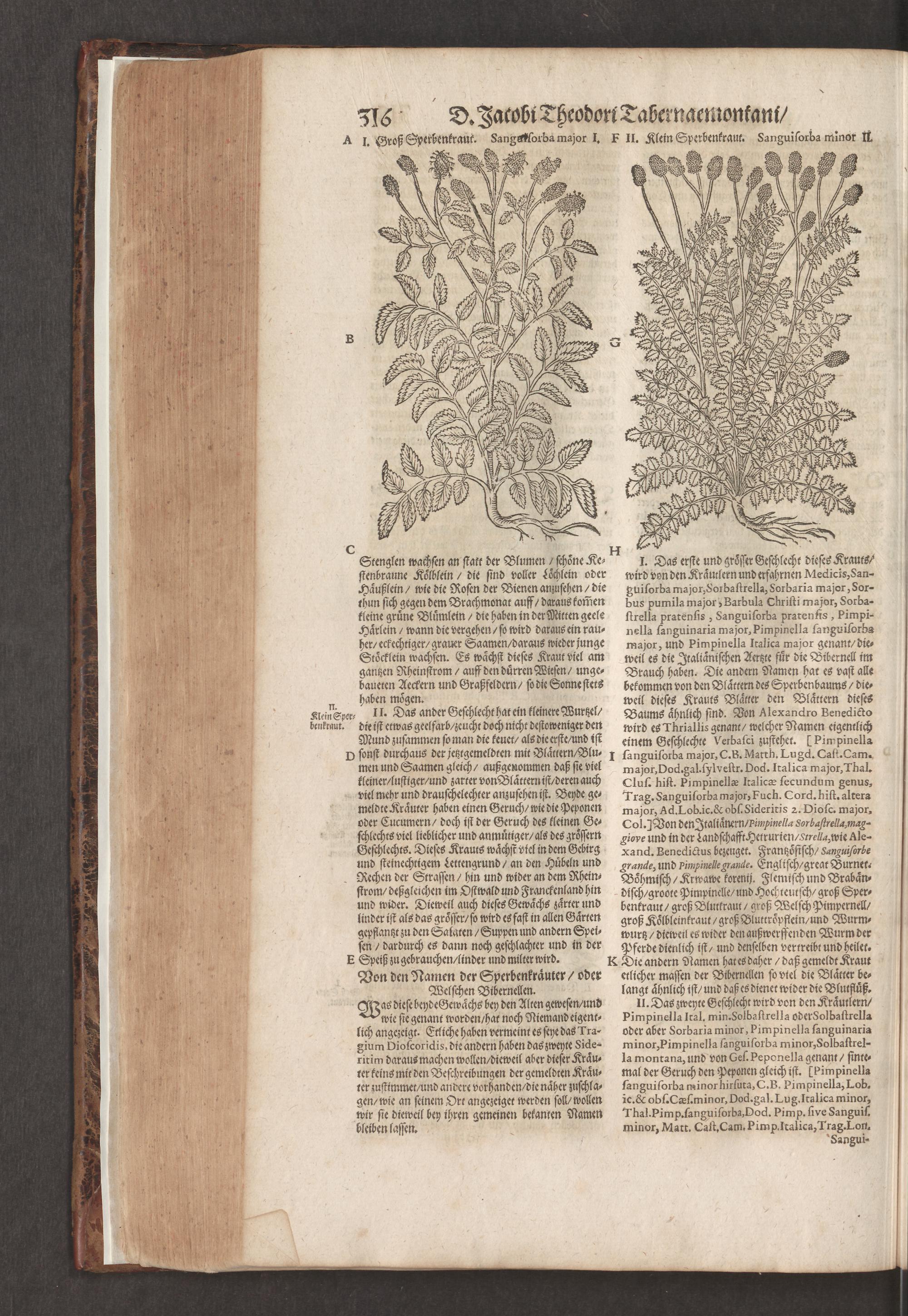 D. Jacobi Theodori Tabernaemontani, Neu vollkommen Kräuter-Buch : Darinnen Uber 3000. Kräuter/ mit schönen und kunstlichen Figuren/ auch deren Underscheid und Würckung/ samt ihren Namen in mancherley Sprachen/ beschrieben: Desgleichen auch/ wie dieselbige in allerhand Kranckheiten/ beyde der Menschen und des Viehs/ sollen angewendet und gebraucht werden/ angezeigt wird. Erstlichen durch Casparum Bauhinum D. und Profess. Basil. mit vielen neuen Figuren/ nutzlichen Artzneyen/ und anderem/ mit sonderem Fleis gebesseret/ Zum Andern Durch Hieronymum Bauhinum D. und Profess. Basil. mit sehr nutzlichen Marginalien, Synonimis, neuen Registeren und anderem vermehrt