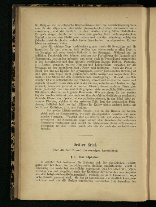 Erster Brief. Über den Sprach-Unterricht im allgemeinen und die bei dem Unterrichte der hebräischen Sprache besonders notwendige Methode.