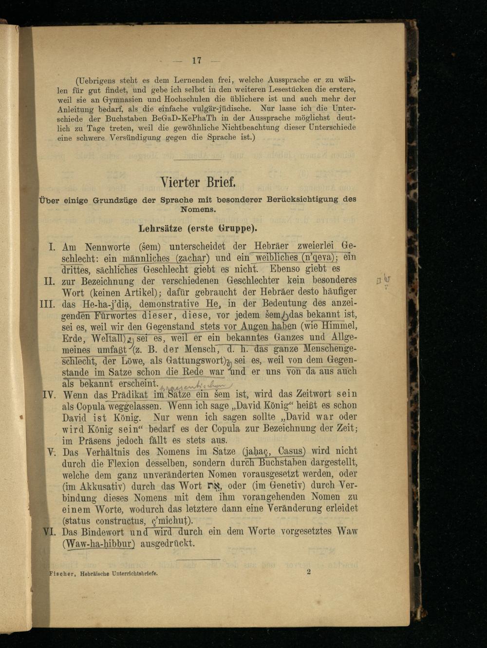 Hebräische Unterrichtsbriefe / nach bewährter Methode für den Selbstunterricht in Alt- und Neuhebräisch bearbeitet von Dr. Bernhard Fischer, Herausgeber des Buxtorf'schen Lexikons