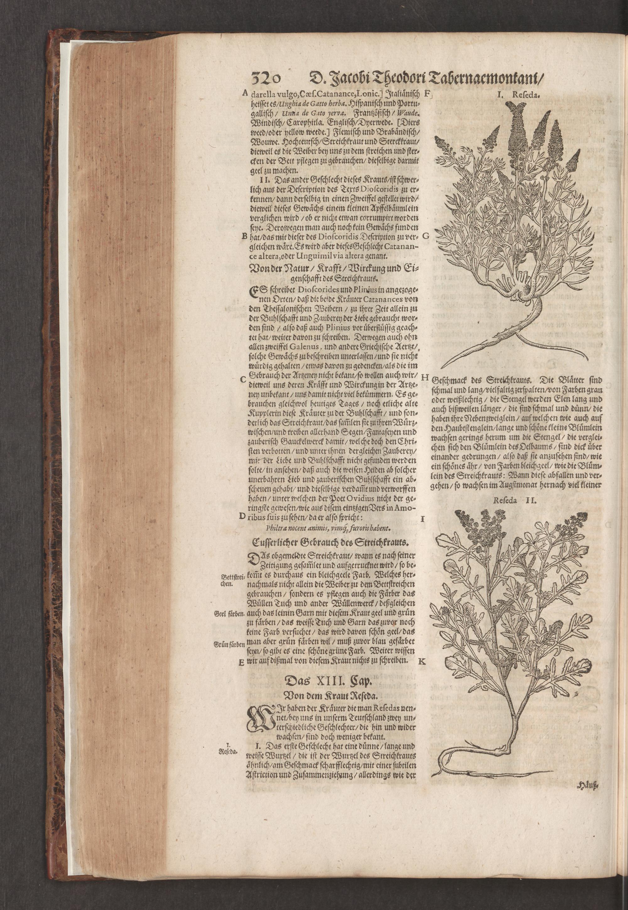 D. Jacobi Theodori Tabernaemontani, Neu vollkommen Kräuter-Buch : Darinnen Uber 3000. Kräuter/ mit schönen und kunstlichen Figuren/ auch deren Underscheid und Würckung/ samt ihren Namen in mancherley Sprachen/ beschrieben: Desgleichen auch/ wie dieselbige in allerhand Kranckheiten/ beyde der Menschen und des Viehs/ sollen angewendet und gebraucht werden/ angezeigt wird. Erstlichen durch Casparum Bauhinum D. und Profess. Basil. mit vielen neuen Figuren/ nutzlichen Artzneyen/ und anderem/ mit sonderem Fleis gebesseret/ Zum Andern Durch Hieronymum Bauhinum D. und Profess. Basil. mit sehr nutzlichen Marginalien, Synonimis, neuen Registeren und anderem vermehrt