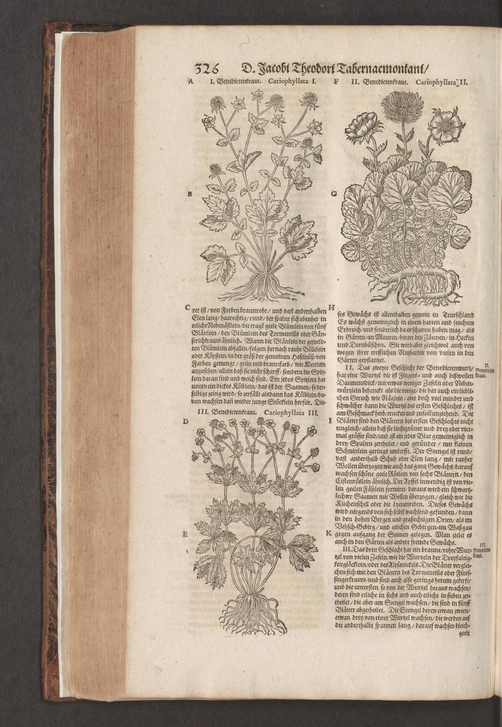 D. Jacobi Theodori Tabernaemontani, Neu vollkommen Kräuter-Buch : Darinnen Uber 3000. Kräuter/ mit schönen und kunstlichen Figuren/ auch deren Underscheid und Würckung/ samt ihren Namen in mancherley Sprachen/ beschrieben: Desgleichen auch/ wie dieselbige in allerhand Kranckheiten/ beyde der Menschen und des Viehs/ sollen angewendet und gebraucht werden/ angezeigt wird. Erstlichen durch Casparum Bauhinum D. und Profess. Basil. mit vielen neuen Figuren/ nutzlichen Artzneyen/ und anderem/ mit sonderem Fleis gebesseret/ Zum Andern Durch Hieronymum Bauhinum D. und Profess. Basil. mit sehr nutzlichen Marginalien, Synonimis, neuen Registeren und anderem vermehrt