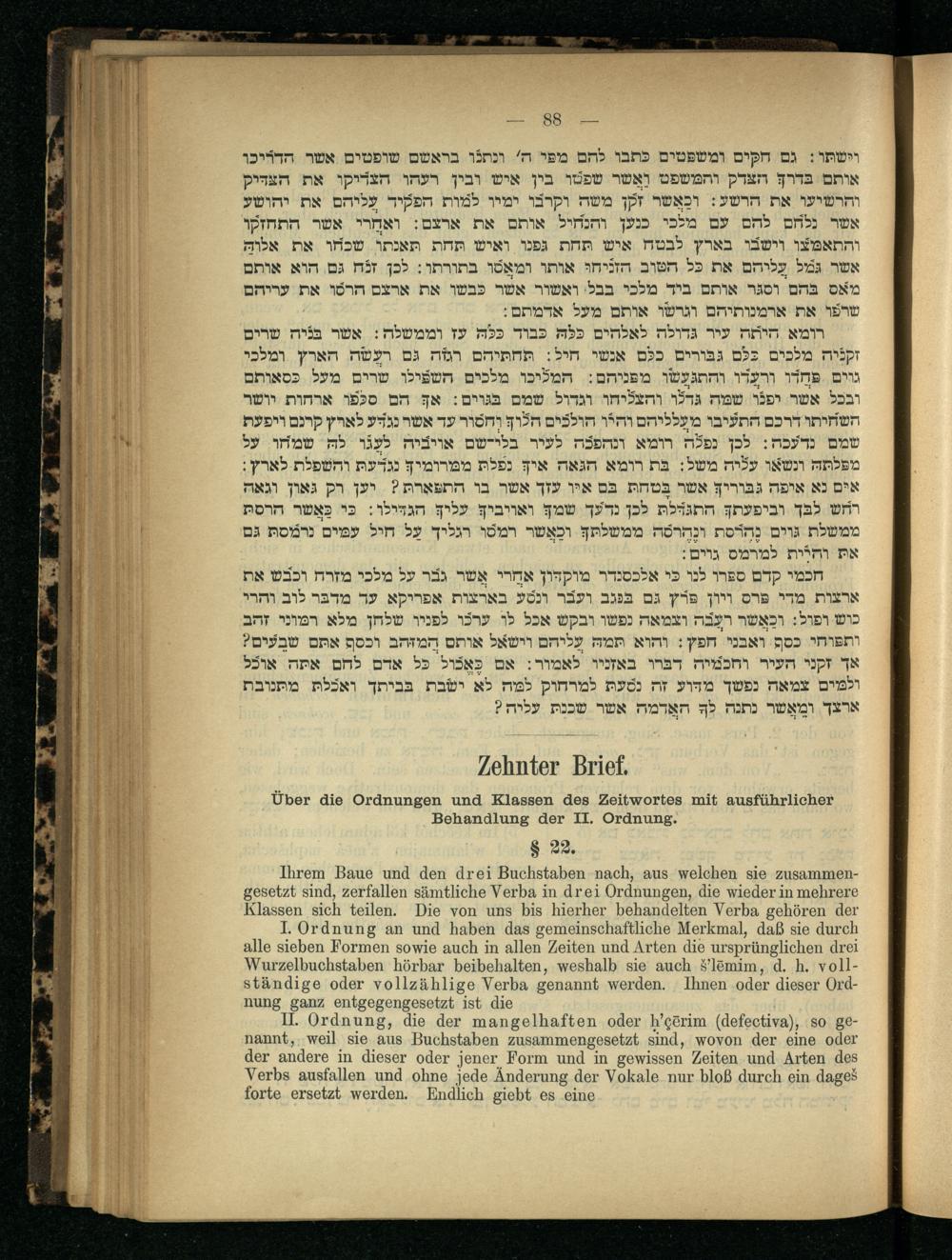 Zehnter Brief. Über die Ordnungen und Klassen des Zeitwortes mit ausführlicher Behandlung...