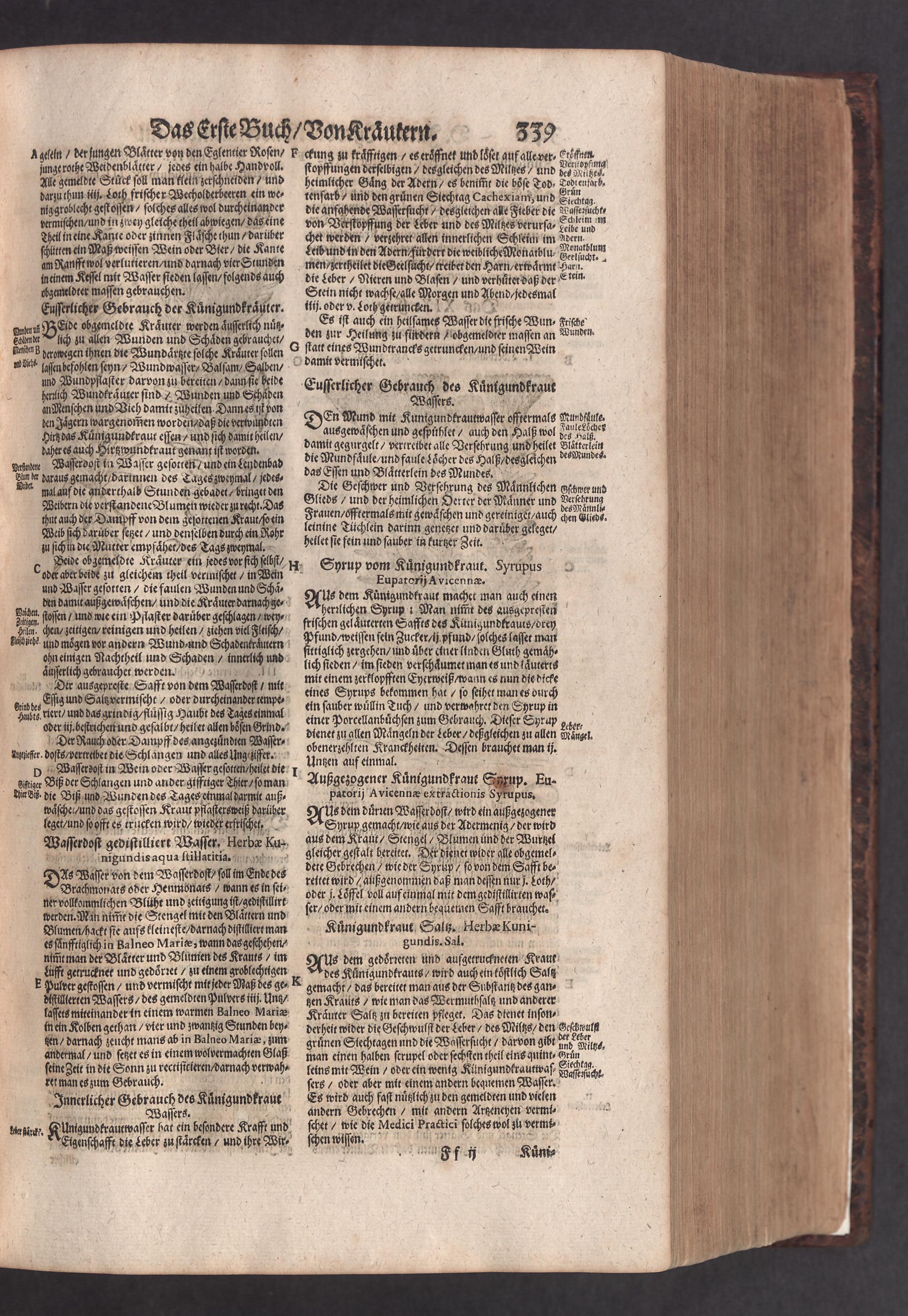 D. Jacobi Theodori Tabernaemontani, Neu vollkommen Kräuter-Buch : Darinnen Uber 3000. Kräuter/ mit schönen und kunstlichen Figuren/ auch deren Underscheid und Würckung/ samt ihren Namen in mancherley Sprachen/ beschrieben: Desgleichen auch/ wie dieselbige in allerhand Kranckheiten/ beyde der Menschen und des Viehs/ sollen angewendet und gebraucht werden/ angezeigt wird. Erstlichen durch Casparum Bauhinum D. und Profess. Basil. mit vielen neuen Figuren/ nutzlichen Artzneyen/ und anderem/ mit sonderem Fleis gebesseret/ Zum Andern Durch Hieronymum Bauhinum D. und Profess. Basil. mit sehr nutzlichen Marginalien, Synonimis, neuen Registeren und anderem vermehrt