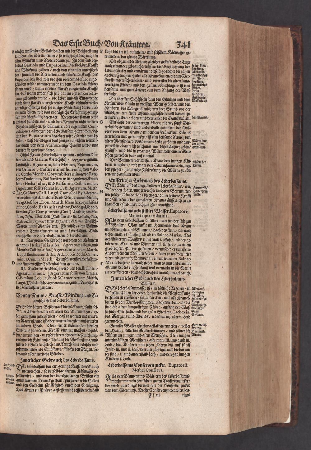 D. Jacobi Theodori Tabernaemontani, Neu vollkommen Kräuter-Buch : Darinnen Uber 3000. Kräuter/ mit schönen und kunstlichen Figuren/ auch deren Underscheid und Würckung/ samt ihren Namen in mancherley Sprachen/ beschrieben: Desgleichen auch/ wie dieselbige in allerhand Kranckheiten/ beyde der Menschen und des Viehs/ sollen angewendet und gebraucht werden/ angezeigt wird. Erstlichen durch Casparum Bauhinum D. und Profess. Basil. mit vielen neuen Figuren/ nutzlichen Artzneyen/ und anderem/ mit sonderem Fleis gebesseret/ Zum Andern Durch Hieronymum Bauhinum D. und Profess. Basil. mit sehr nutzlichen Marginalien, Synonimis, neuen Registeren und anderem vermehrt