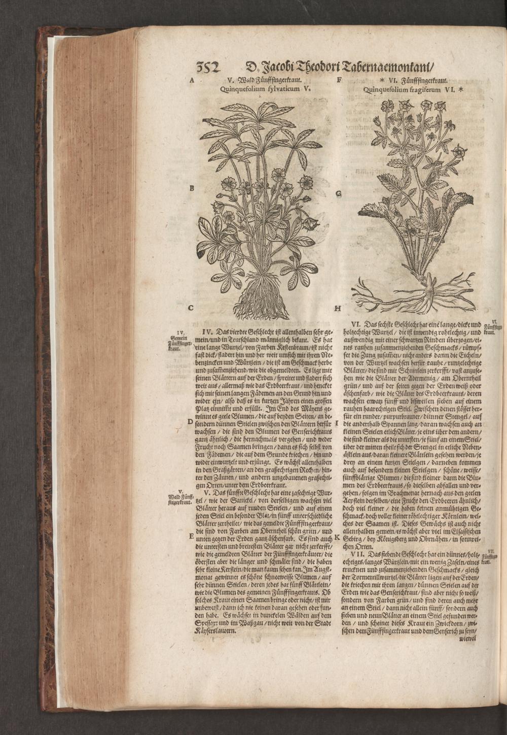 D. Jacobi Theodori Tabernaemontani, Neu vollkommen Kräuter-Buch : Darinnen Uber 3000. Kräuter/ mit schönen und kunstlichen Figuren/ auch deren Underscheid und Würckung/ samt ihren Namen in mancherley Sprachen/ beschrieben: Desgleichen auch/ wie dieselbige in allerhand Kranckheiten/ beyde der Menschen und des Viehs/ sollen angewendet und gebraucht werden/ angezeigt wird. Erstlichen durch Casparum Bauhinum D. und Profess. Basil. mit vielen neuen Figuren/ nutzlichen Artzneyen/ und anderem/ mit sonderem Fleis gebesseret/ Zum Andern Durch Hieronymum Bauhinum D. und Profess. Basil. mit sehr nutzlichen Marginalien, Synonimis, neuen Registeren und anderem vermehrt