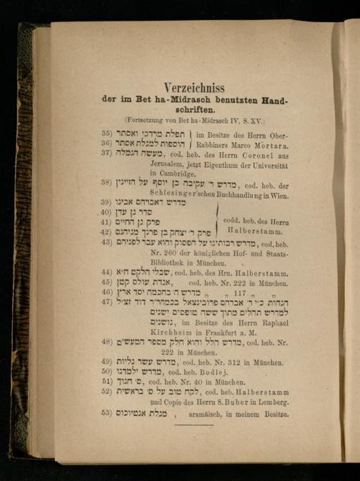 Verzeichnis der im Bet ha-Midrasch nebutztem Handschriften.