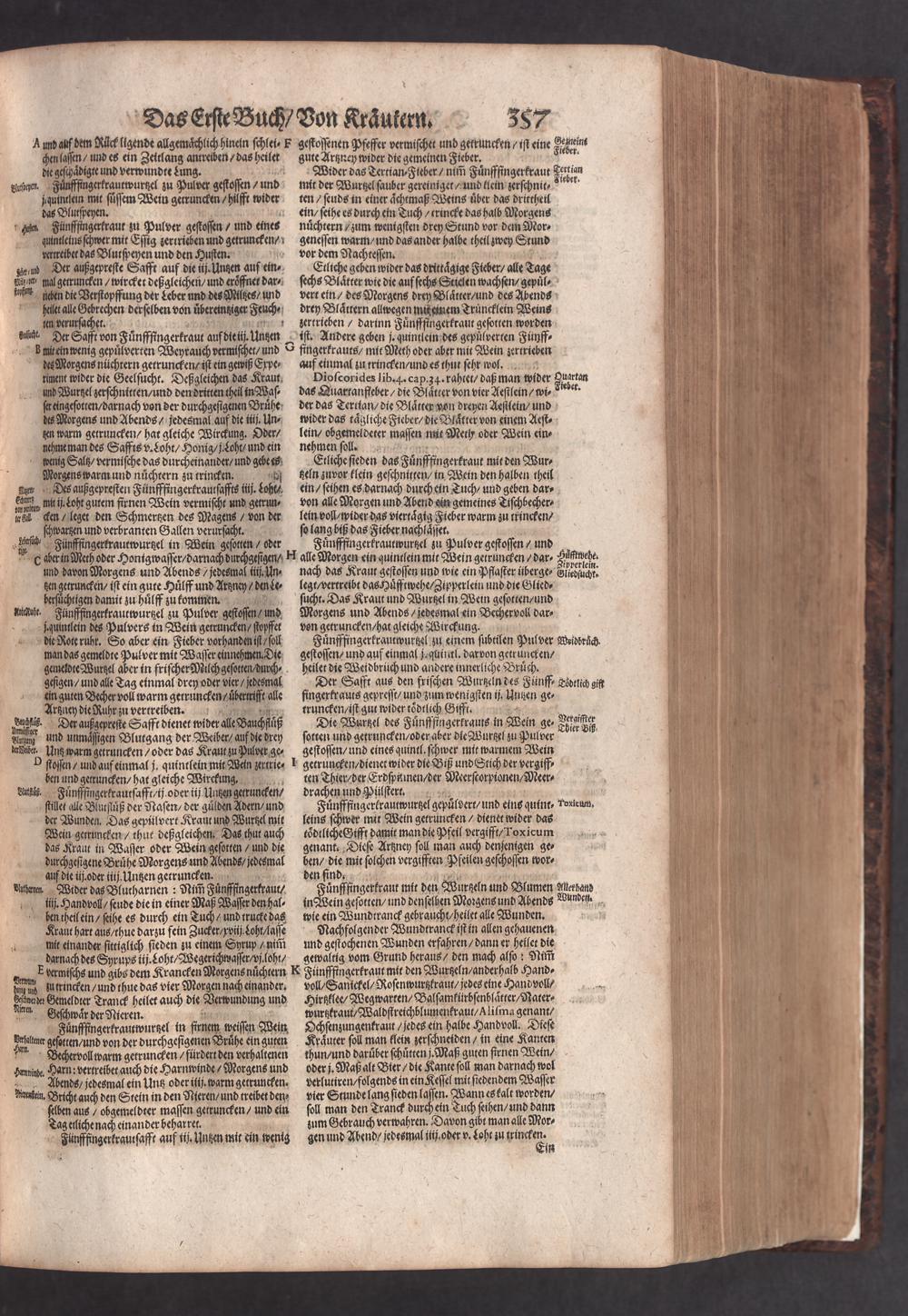 D. Jacobi Theodori Tabernaemontani, Neu vollkommen Kräuter-Buch : Darinnen Uber 3000. Kräuter/ mit schönen und kunstlichen Figuren/ auch deren Underscheid und Würckung/ samt ihren Namen in mancherley Sprachen/ beschrieben: Desgleichen auch/ wie dieselbige in allerhand Kranckheiten/ beyde der Menschen und des Viehs/ sollen angewendet und gebraucht werden/ angezeigt wird. Erstlichen durch Casparum Bauhinum D. und Profess. Basil. mit vielen neuen Figuren/ nutzlichen Artzneyen/ und anderem/ mit sonderem Fleis gebesseret/ Zum Andern Durch Hieronymum Bauhinum D. und Profess. Basil. mit sehr nutzlichen Marginalien, Synonimis, neuen Registeren und anderem vermehrt