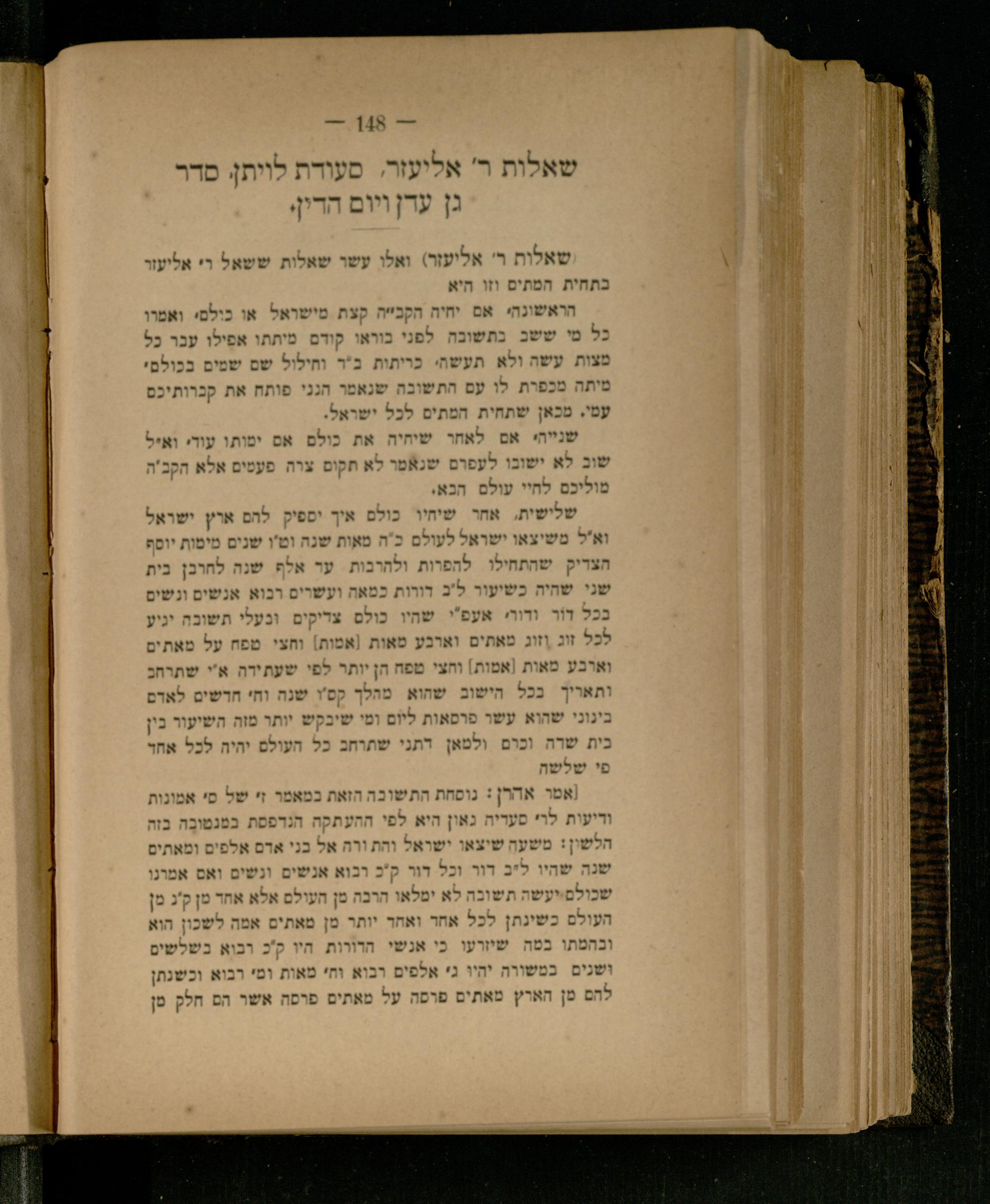 .שאלות ר' אליעזר, סעודת לויתן, סדר גן עדן ויום הדין