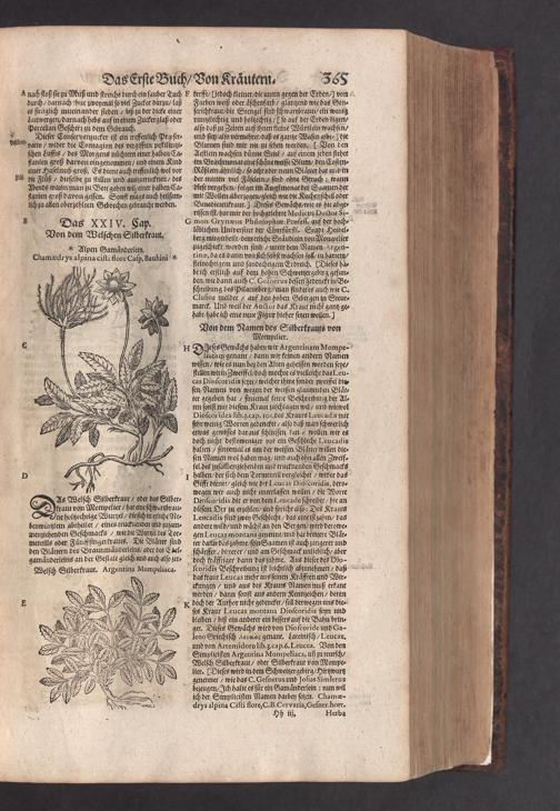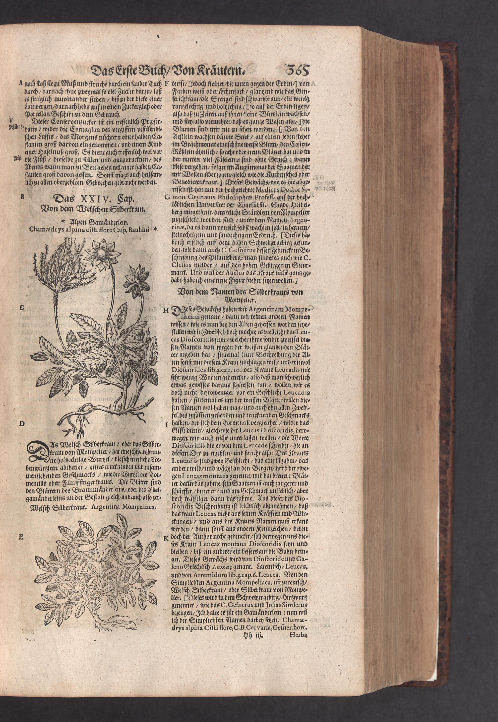 D. Jacobi Theodori Tabernaemontani, Neu vollkommen Kräuter-Buch : Darinnen Uber 3000. Kräuter/ mit schönen und kunstlichen Figuren/ auch deren Underscheid und Würckung/ samt ihren Namen in mancherley Sprachen/ beschrieben: Desgleichen auch/ wie dieselbige in allerhand Kranckheiten/ beyde der Menschen und des Viehs/ sollen angewendet und gebraucht werden/ angezeigt wird. Erstlichen durch Casparum Bauhinum D. und Profess. Basil. mit vielen neuen Figuren/ nutzlichen Artzneyen/ und anderem/ mit sonderem Fleis gebesseret/ Zum Andern Durch Hieronymum Bauhinum D. und Profess. Basil. mit sehr nutzlichen Marginalien, Synonimis, neuen Registeren und anderem vermehrt