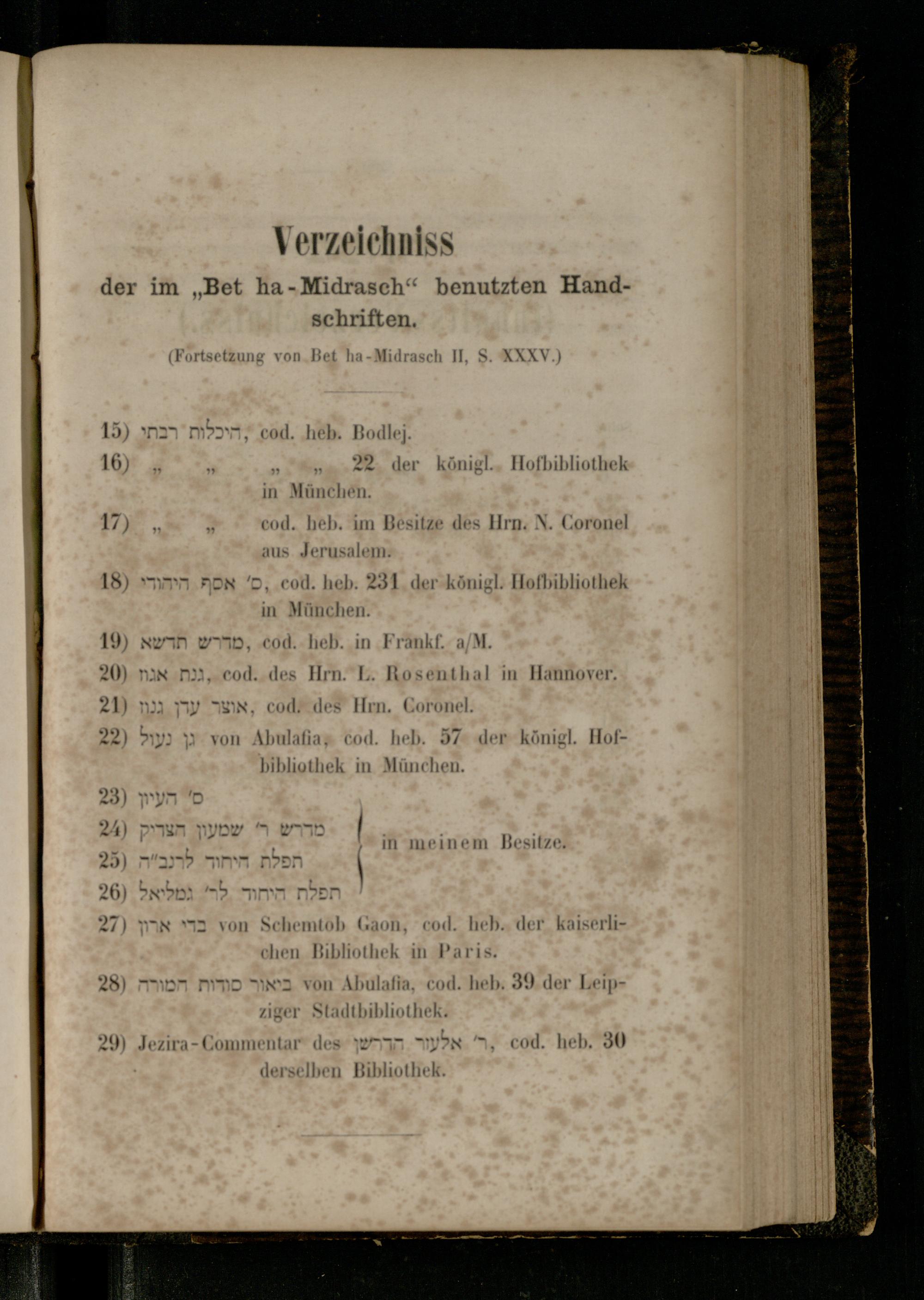 Verzeichniss der im "Bet ha-Midrasch" benutzten Handschriften.